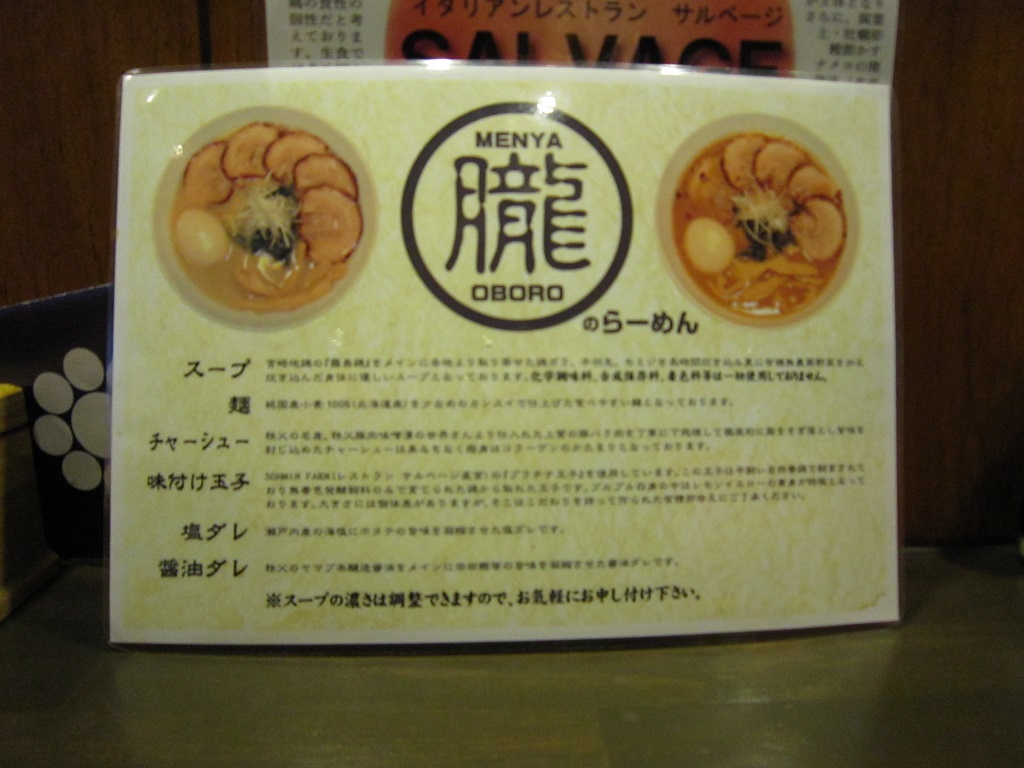 ただし、やはりこれだけこだわりの食材を使っているだけに、お値段も相当なもんです。何しろ普通のラーメンでも850円。チャーシューメンは1,100円です。ただし、店内がお洒落で、割と入りやすい感じなので、お勧めできると思います。なお、味の濃さは調整できるらしいので、濃い味が苦手な方は調節してもらった方がいいかも知れません。