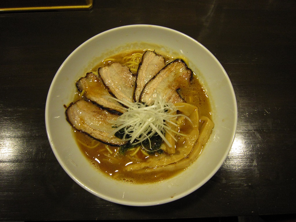 写真とはちょっと違うのですが、なんとびっくり。このチャーシュー、わざわざ外を炙ってある、炙りチャーシューなんです。このチャーシューが口の中で持っていくと、まずは炙ったところの香ばしさが来て、次にふわっととろける感じで、とってもうまいんです。麺はやや太め。超濃厚なスープに負けない感じで、下手な豚骨ラーメンよりもこってりした感じです。