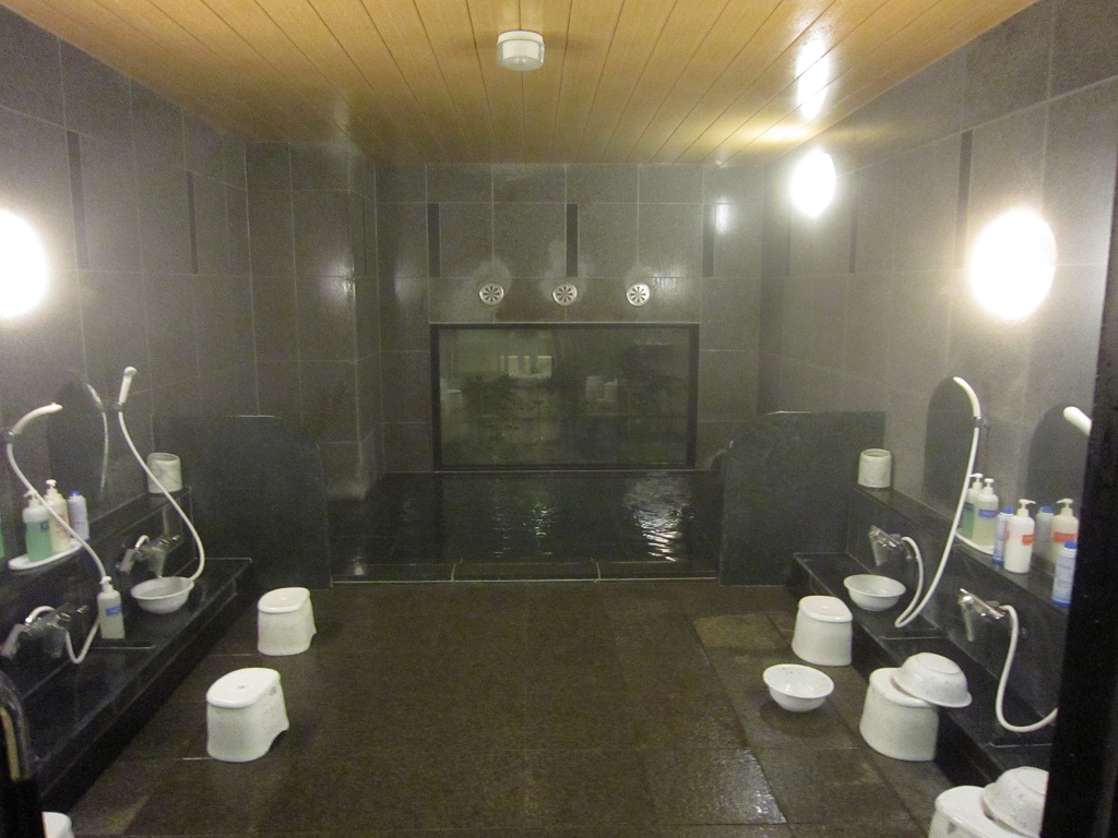 館内は、1階がロビーとフロント、大浴場、朝食を食べる場所、自動販売機コーナー。2階よりも上が客室になっています。大浴場は男女別々になっていまして、人工温泉の大浴場があります。