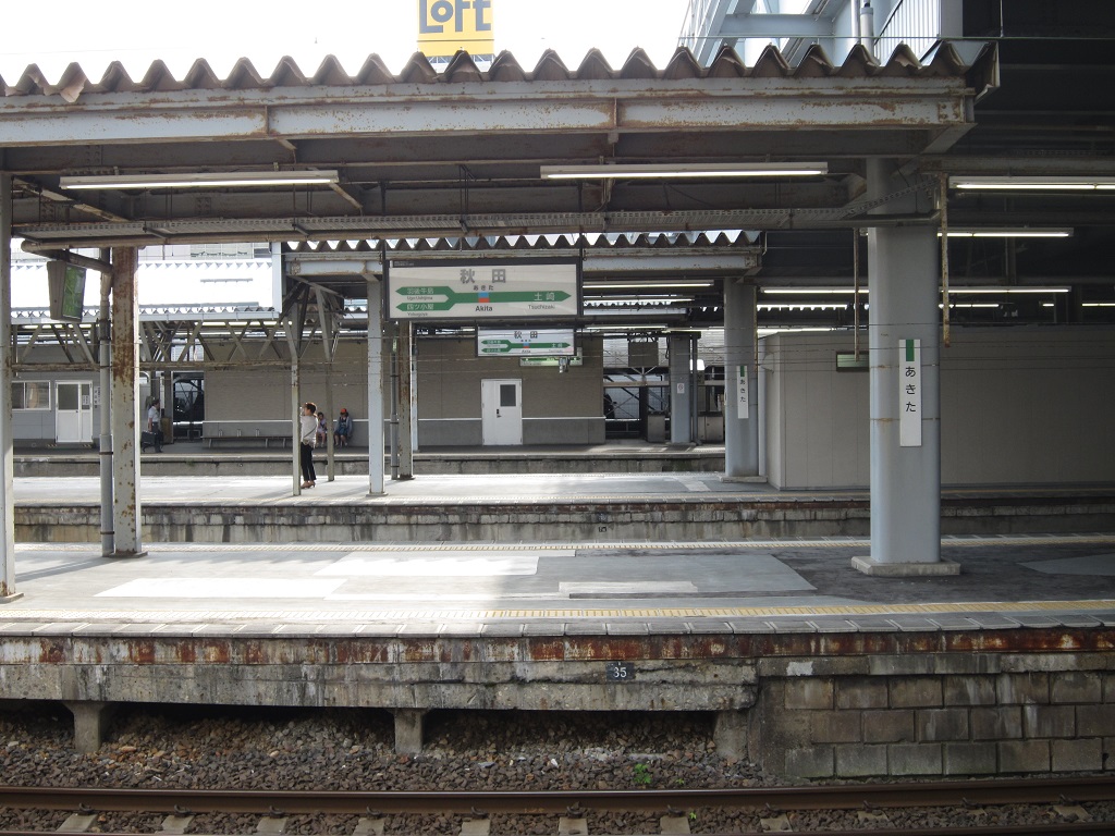 秋田駅です。言うまでもないとは思いますが、秋田県の県庁所在地です。なので、駅は広くて、いろんな電車が来ます。乗り入れているのは、秋田新幹線、奥羽本線、羽越本線。それと、追分駅から男鹿線を通る列車も乗り入れます。
