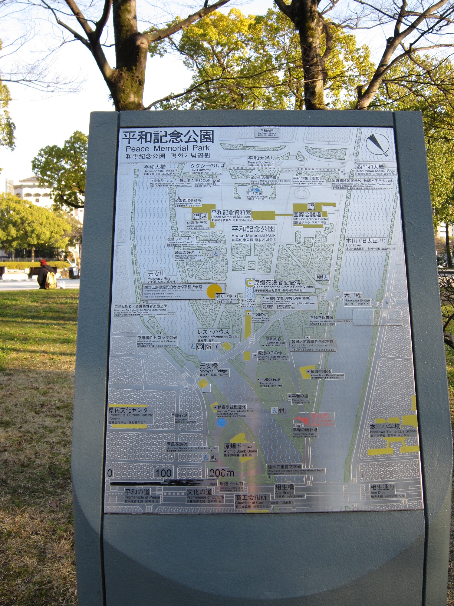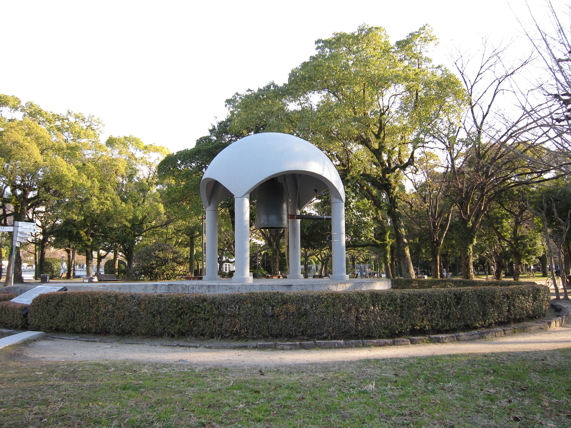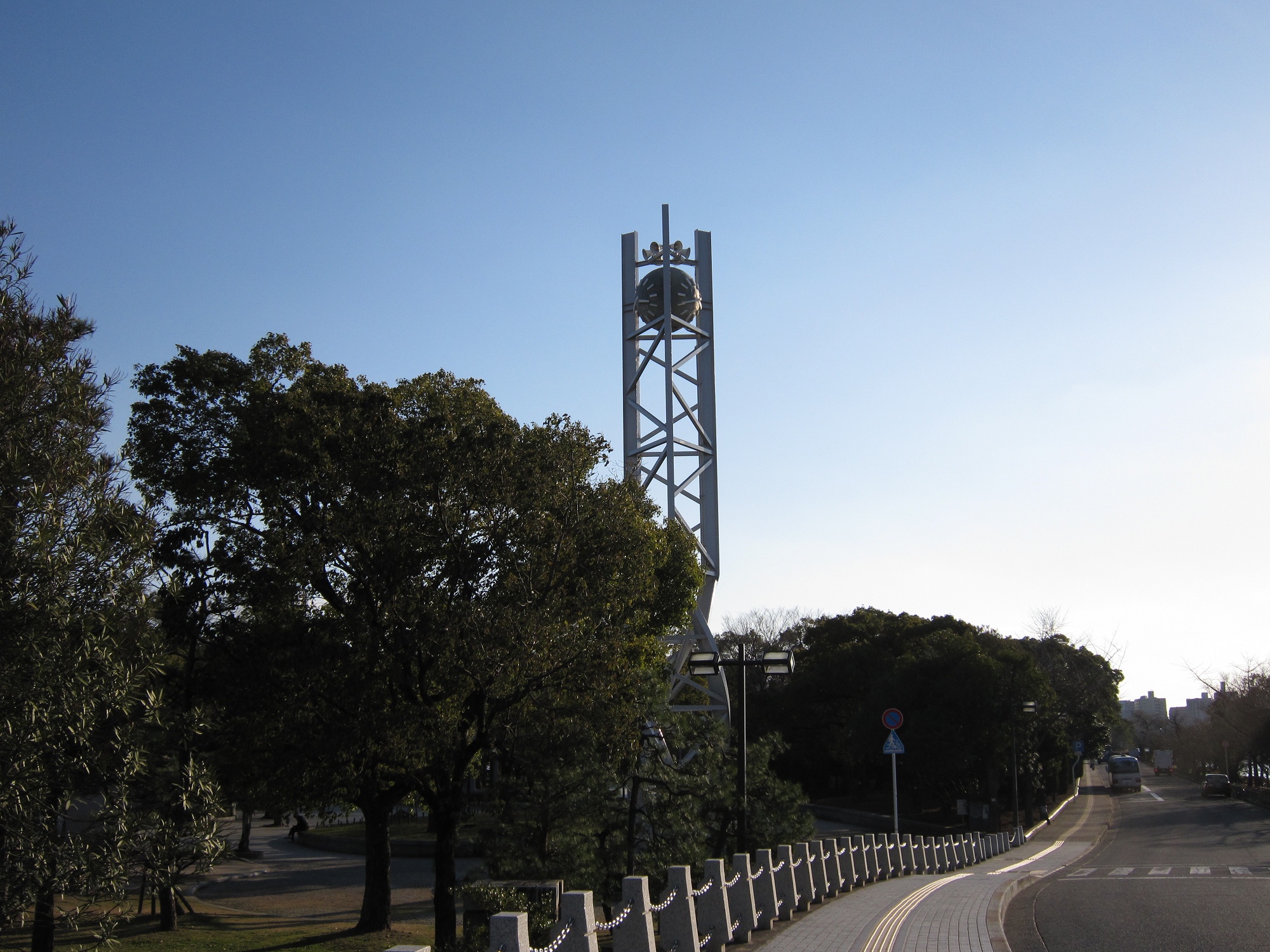 原爆ドームから訪れると、最初に平和の時計塔が見えます。ここが、平和記念公園の北側の入口です。