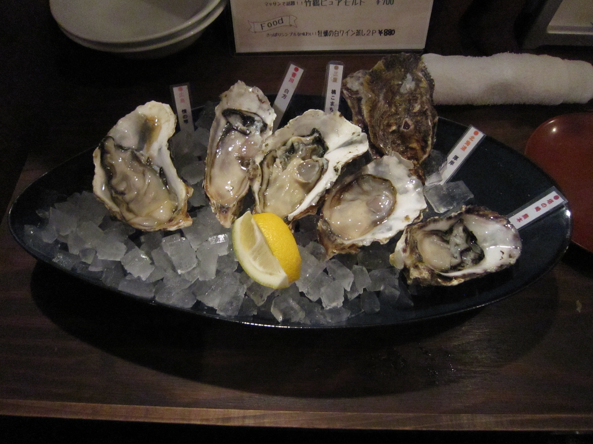 ここは、広島県産の牡蠣だけじゃなくって、全国各地のブランド物の牡蠣が揃ってまして、それを1殻から食べられるというシステムになっています。どの牡蠣があるのかは日替わりになっています。ただ、どの牡蠣がおいしいのかがよくわからないので、お店お任せの5種盛りを頼みました。シンプルに、生ガキをレモン汁でいただきます。わざわざ広島に来てまで、広島県産じゃない牡蠣を食べるって何だかなぁって感じですが、夏になれば広島の牡蠣はシーズンから外れるわけで。