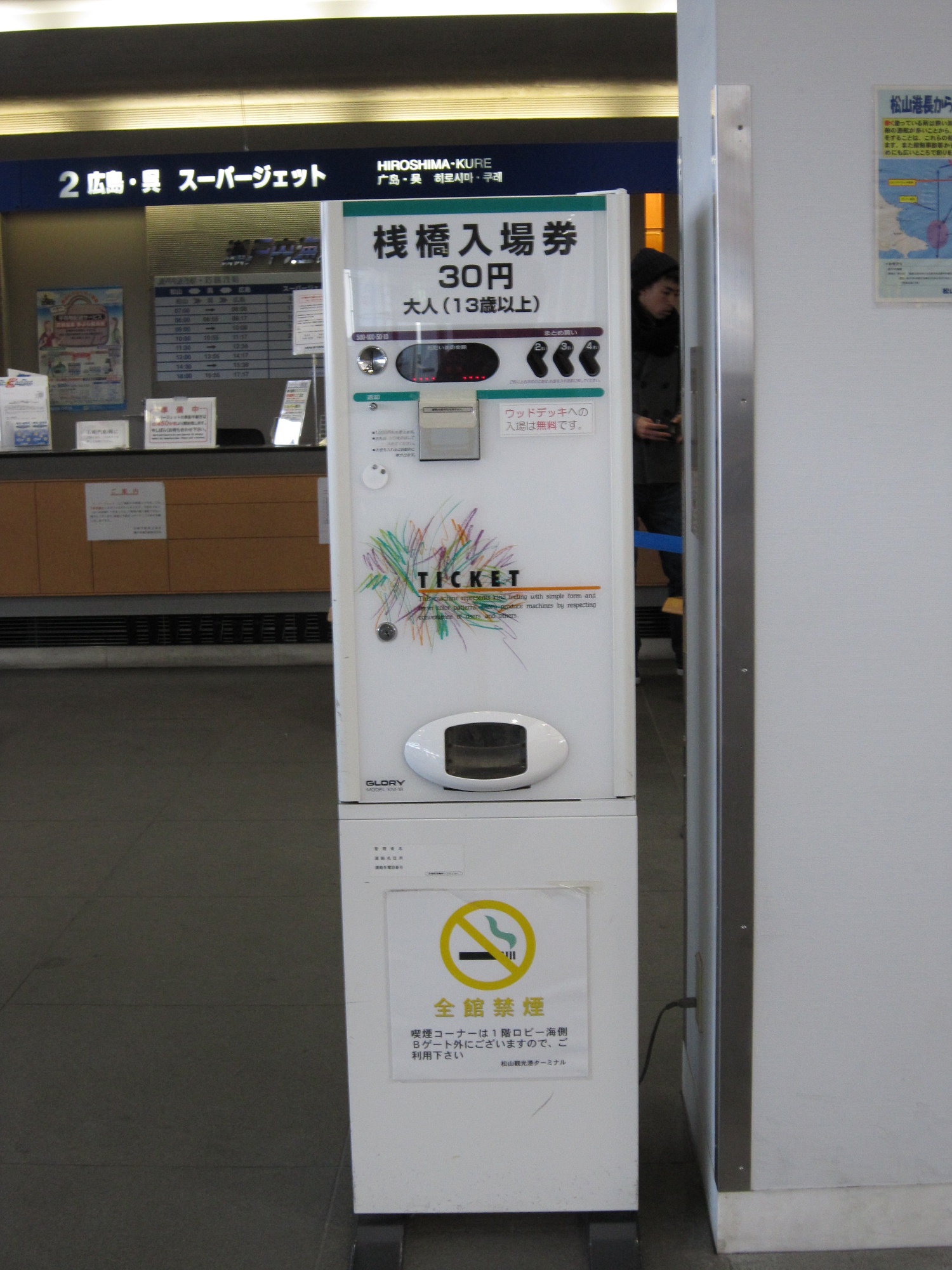 なんと、桟橋に行くのに入場券が要るそうです。値段は30円。いやいやこれだったら、自動券売機の維持費が出るかどうか怪しんですけど。それに、どこで切符を見ているんでしょう。