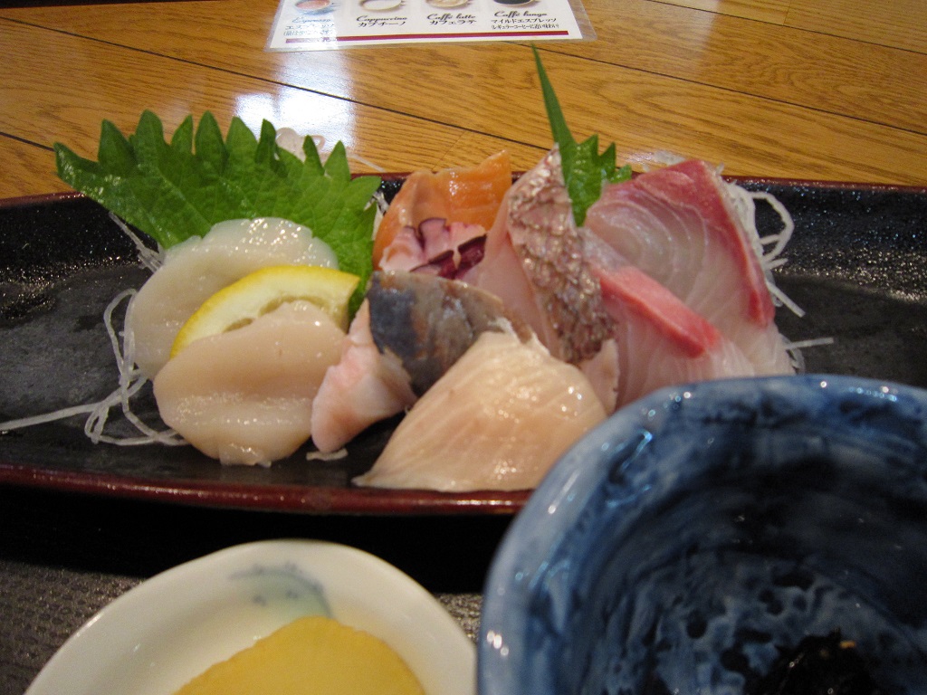 しかし、ちゃんとご飯は食べて帰りましたよ。お刺身定食です。お刺身の中身は、毎日変わるそうです。キューティー吉本的に好印象だったのが、マグロが入ってないこと。