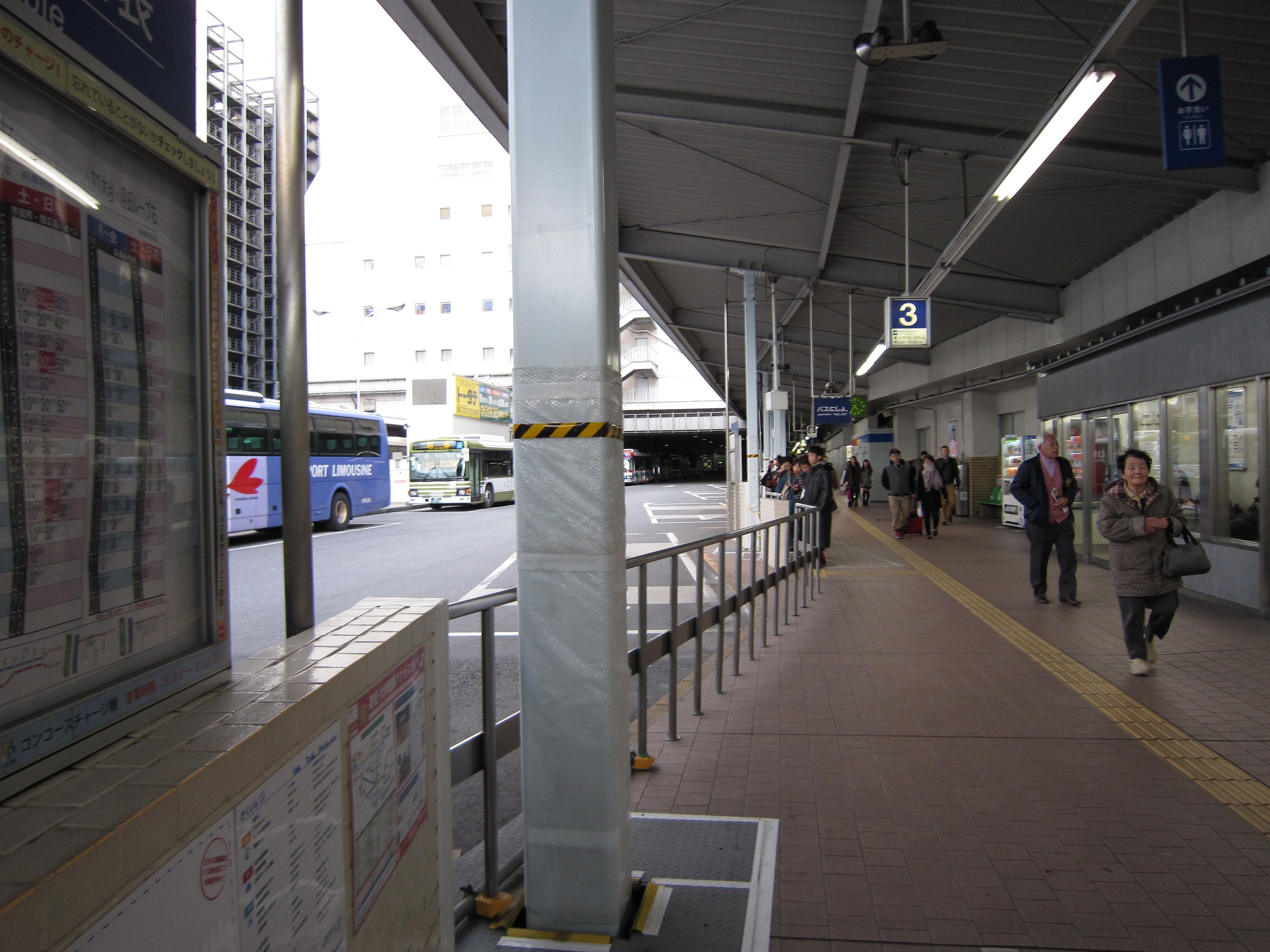 前述の通り、広島バスセンターは広島そごうの建物の中にあります。この写真はバス降り場です。この写真の向かって左側が、バス乗り場です。