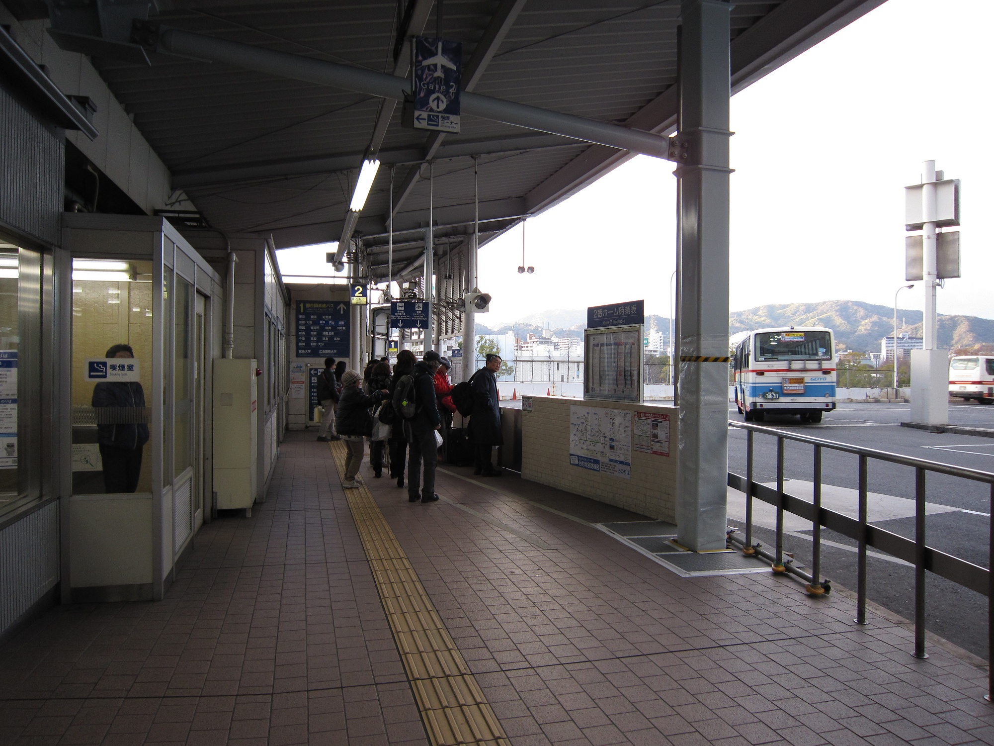 でもって、こちらが高速バス乗り場です。広島県と都市間を結ぶ高速バスや、広島空港行きリムジンバスはここから発着します。長距離バスに乗る乗客に配慮してか、喫煙コーナーがあります。