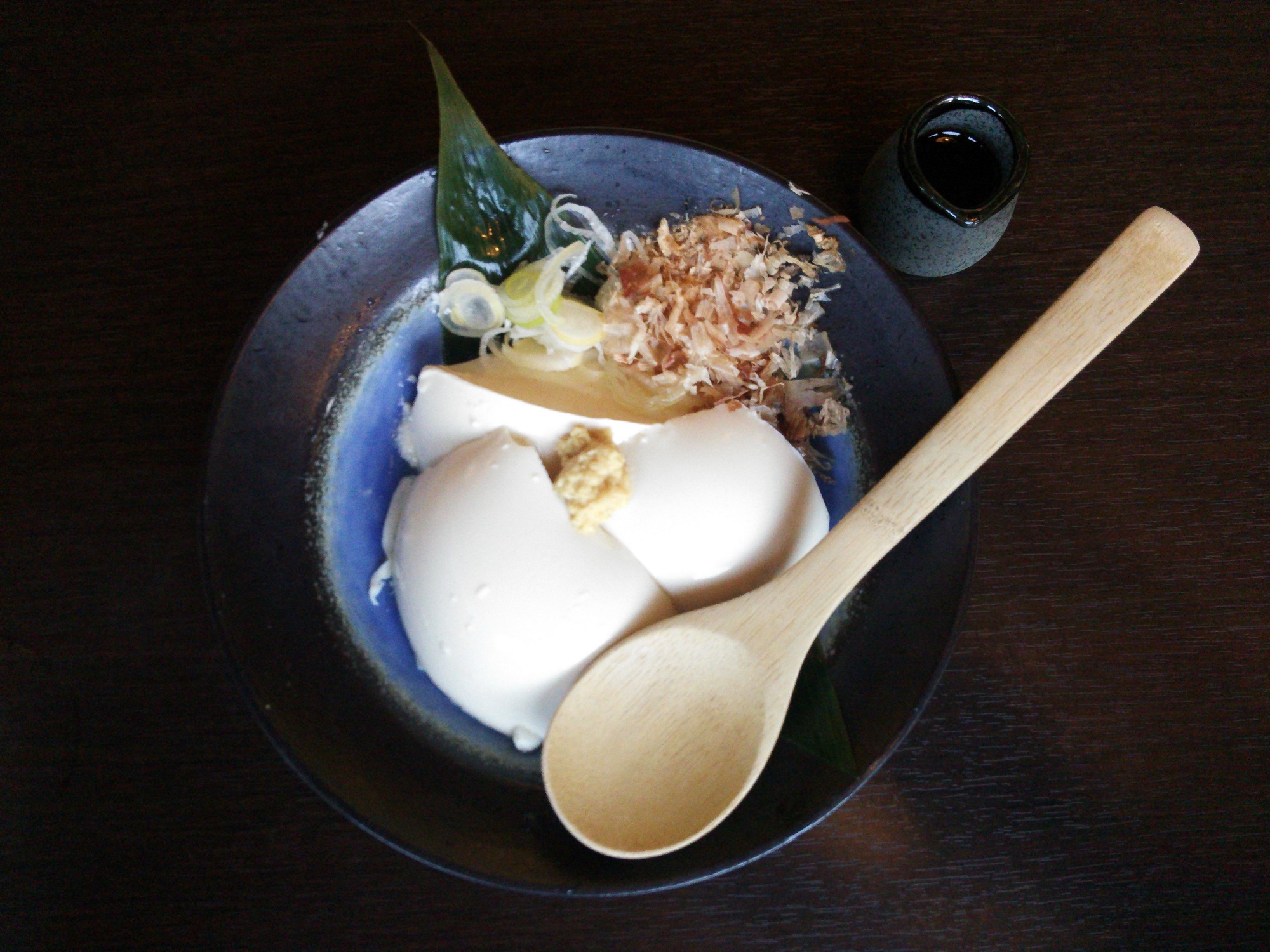 で、お風呂上がりの呑みですが、まずは冷奴を注文。なんとお値段300円です(安い!)。かつおだしの効いた、だし醤油でいただきます。