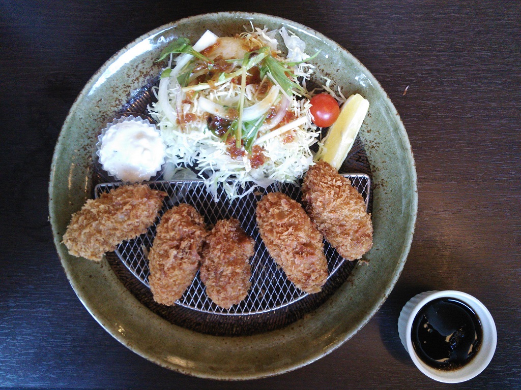 では、広島でしこたま牡蠣を食べてきたにもかかわらず、なぜカキフライを注文したのかといいますと。広島に行ってたときって、夜に呑んでも朝に全然残らなかったんです。これは絶対牡蠣パワーのおかげだ・・・というわけで、カキフライを頼んだというわけです。確かに、このカキフライも実はプリプリ、噛むとエキスがじゅわーっで、おいしかったです。なお、カキフライは単品だけでなく、定食もあります。