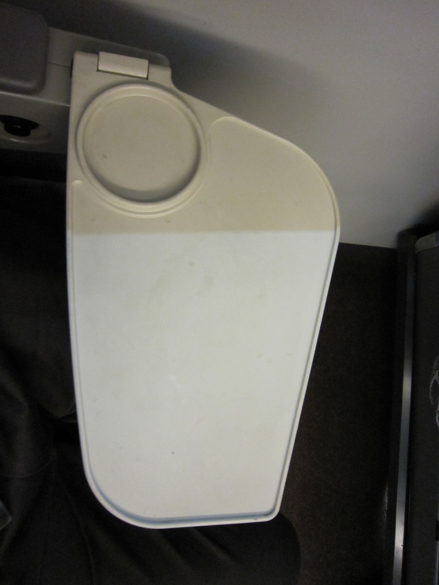 シート背面です。新しい特急だけあって、テーブルは大きめ。しかも、コートフックまでついています。これでドリンクホルダーがついていたら嬉しんだけどなぁ・・・と思ったら・・・