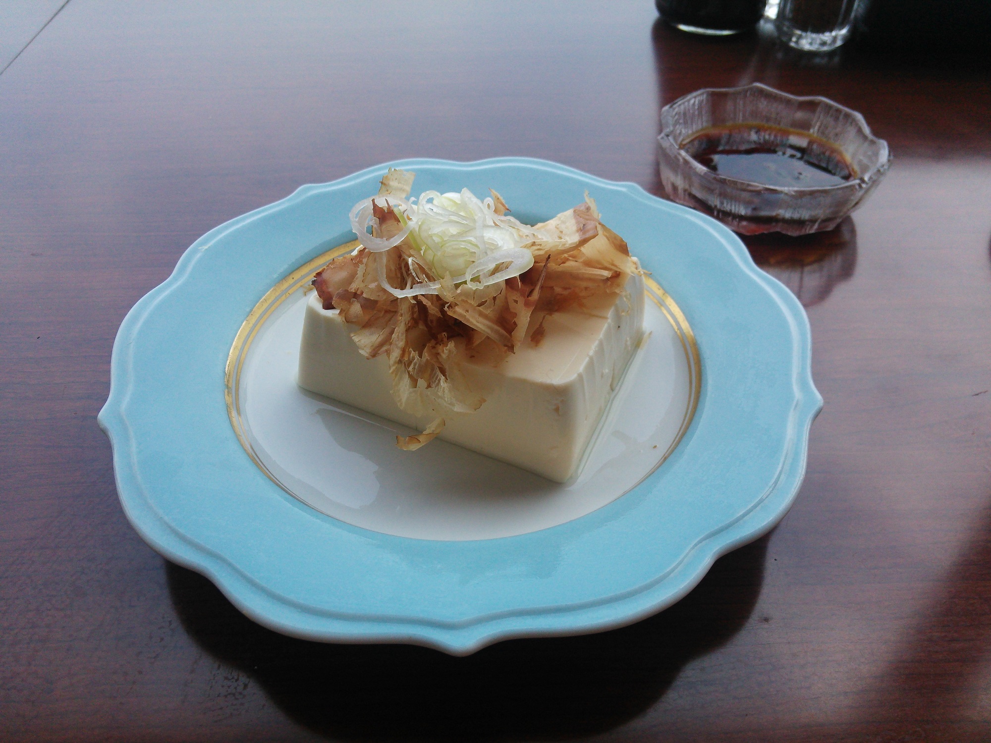 地魚のお刺身に手を出さなければ、おつまみは割安です。これは、冷奴。290円です。だし醤油でいただきます。さすが銚子だけあって、お醤油がおいしいですね。冷奴と合います。