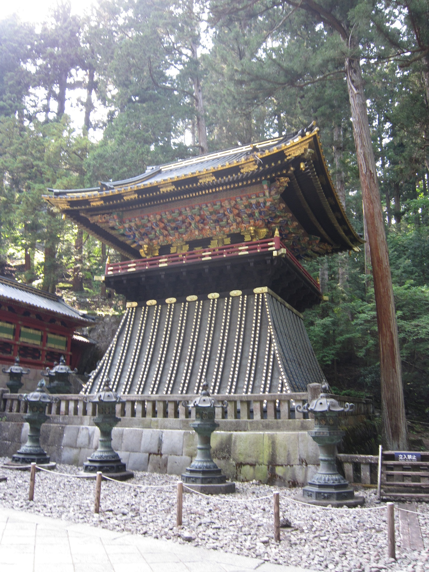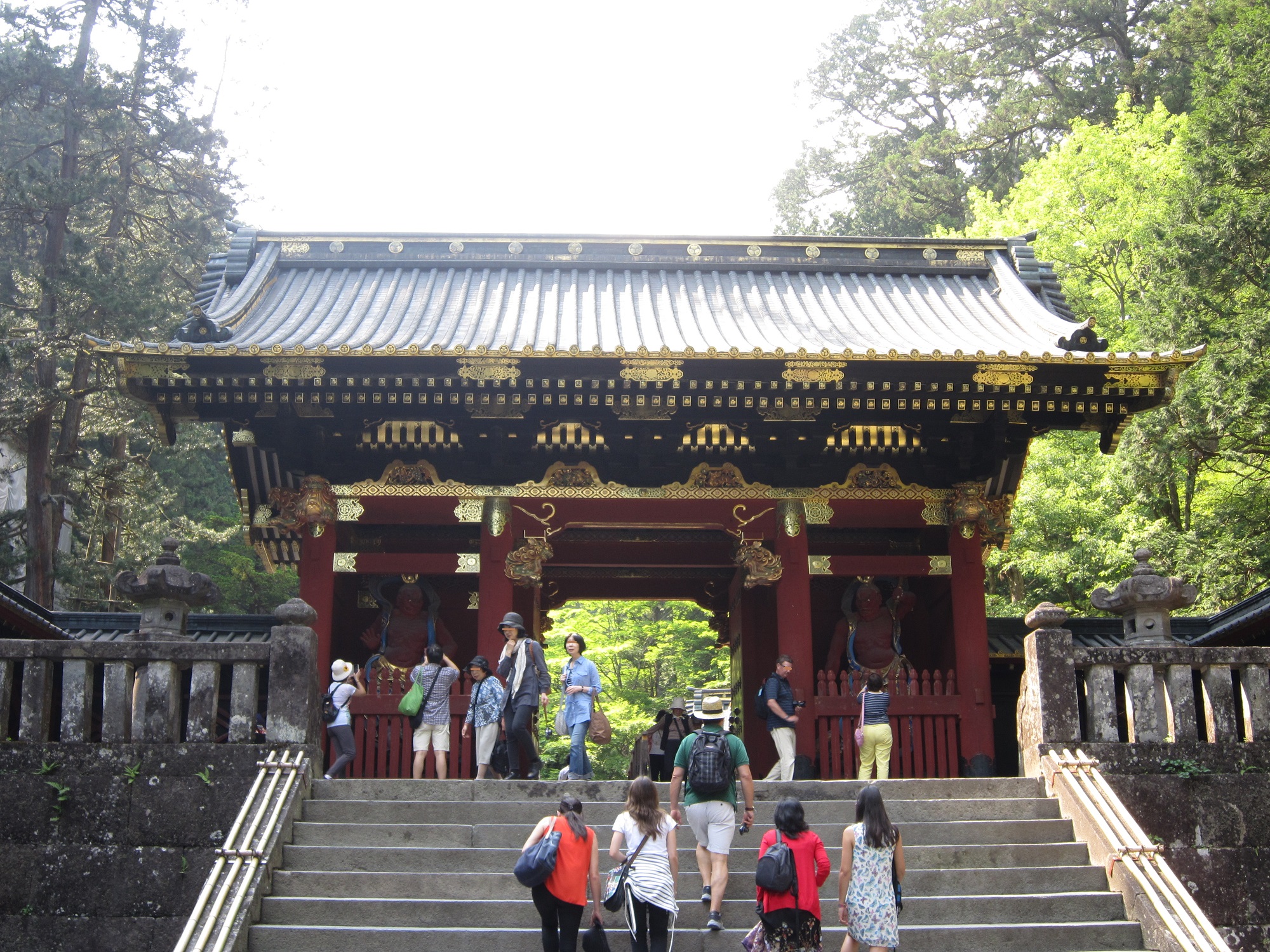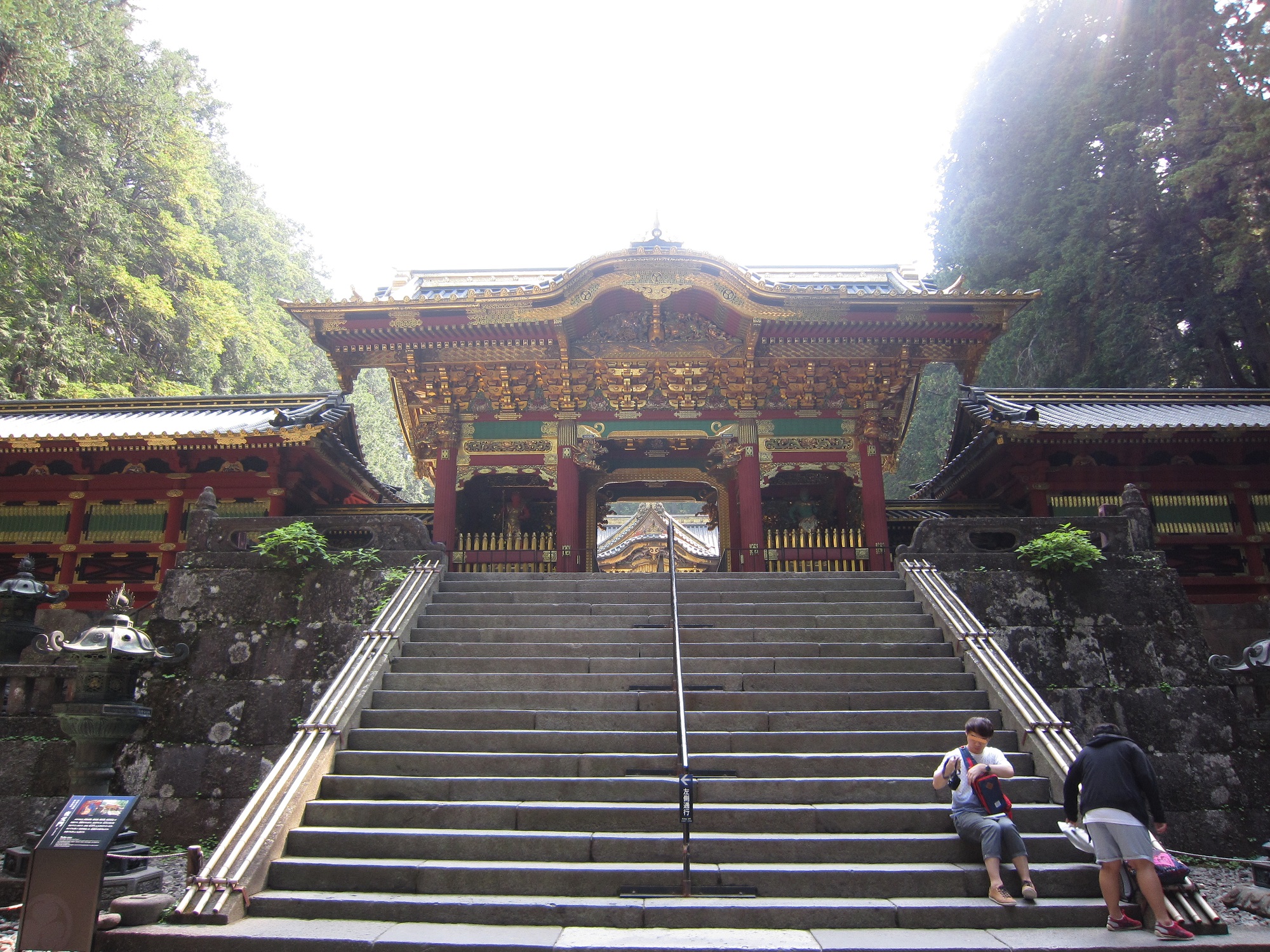 唐門です。総金箔造りの建物でして、両側にある大きな灯篭は、徳川御三家(紀州・水戸・尾張)からの献上品だそうです。