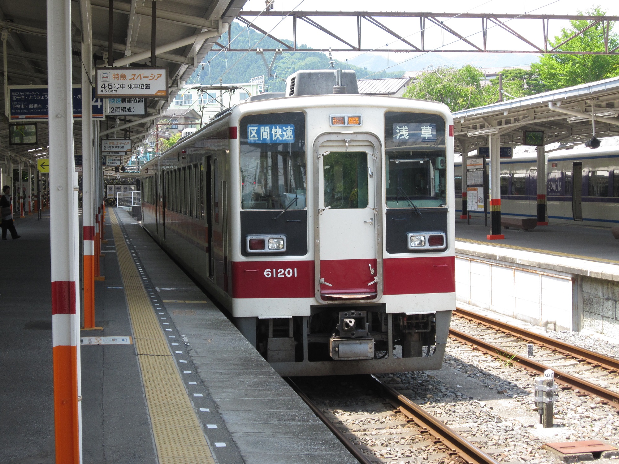 でもって、6番線には特急スペーシアけごん 浅草行きが止まっています。けごんに乗れば東武日光まで乗り換えなしで連れて行ってくれますが、便数はあまりありません。特急スペーシアきぬに乗って、下今市から各駅停車に乗って東武日光へ行くケースが多いと思います。