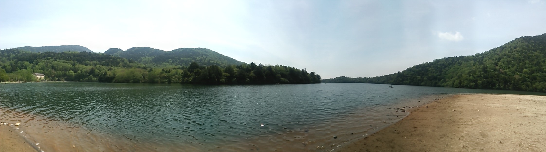 湯元温泉の旅館街に近い湖岸で撮った、パノラマ写真です。