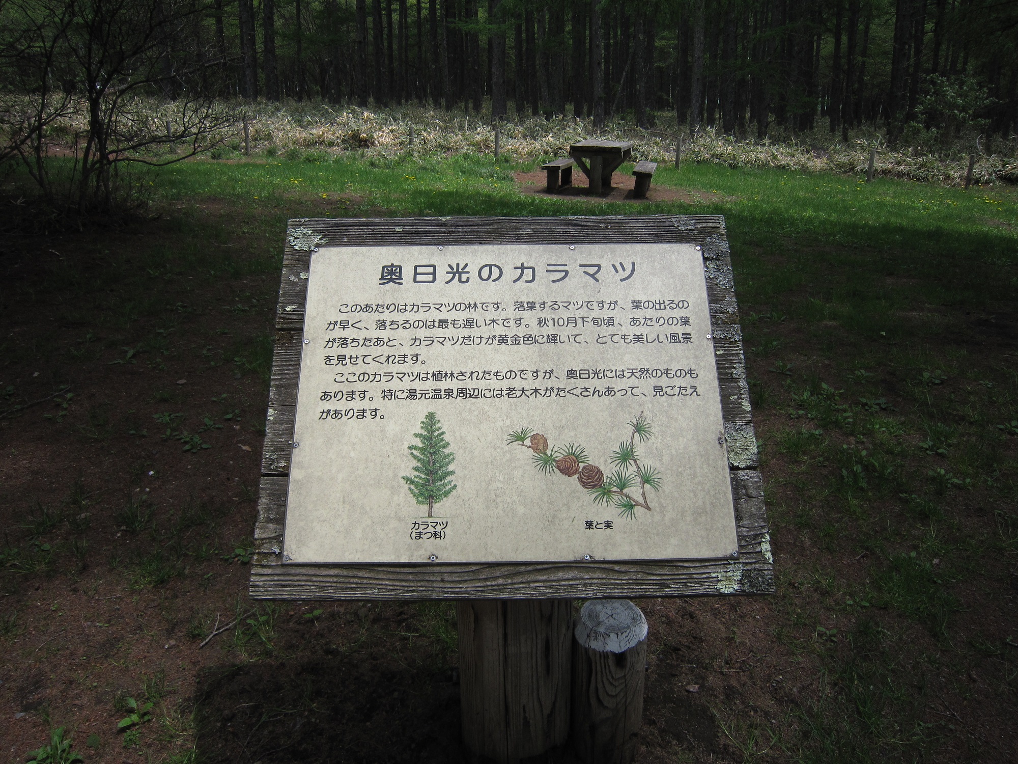 ただし、三本松のカラマツは植林されたものだそうです。どおりで整っているはずです。ただし、奥日光には天然のものもあり、湯元温泉周辺には老大木がたくさんあるそうです。そう言えば、湯ノ湖周辺にありそうな気がします。