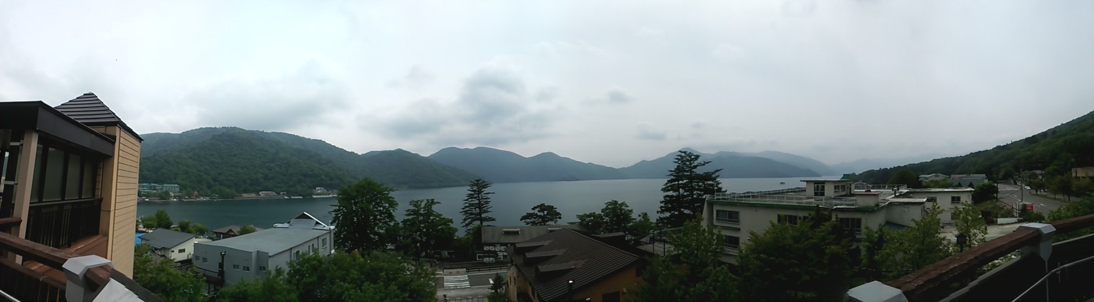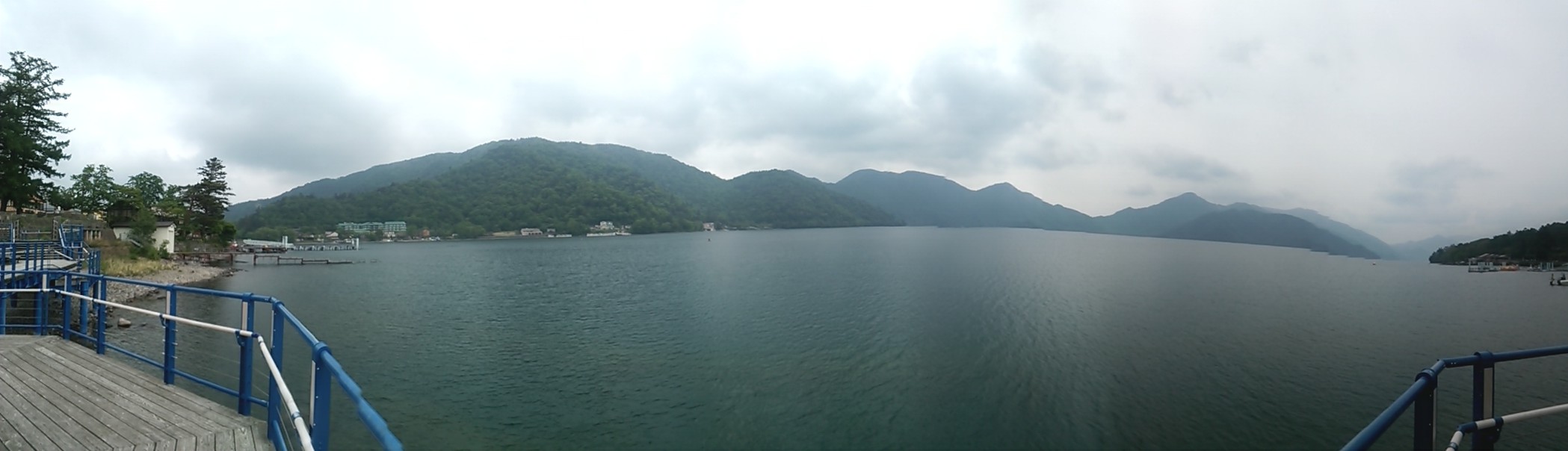 湖上プロムナードから撮ったパノラマ写真です。中禅寺温泉バスターミナルから無理なく歩ける範囲だと、恐らくここが一番近くから中禅寺湖を見ることができます。ただし、人影はまばら。華厳の滝は観光客が結構いたんですけどねぇ。