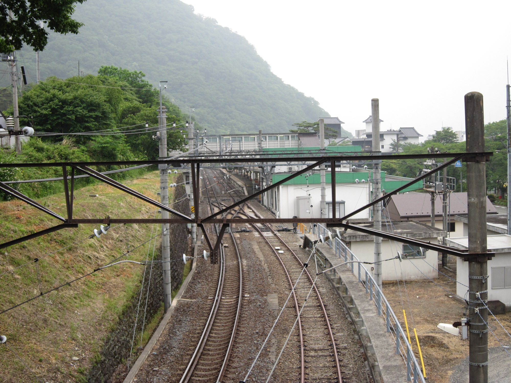 駅付近の歩道橋から見ると、こんな感じ。手前が会津田島方面、奥が浅草方面です。右側が折り返し線になっているのがわかるかと思います。