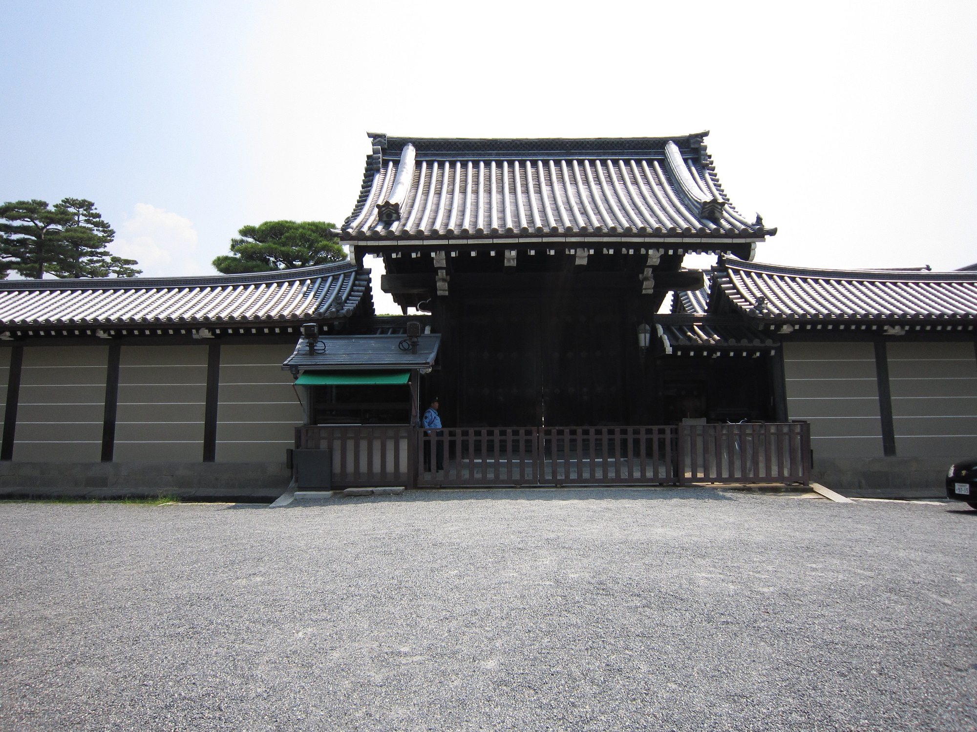 なんと、京都御所への門は閉まっていました。しかも、警官がしっかり見張りをしています。では、その隣の門はというと・・・