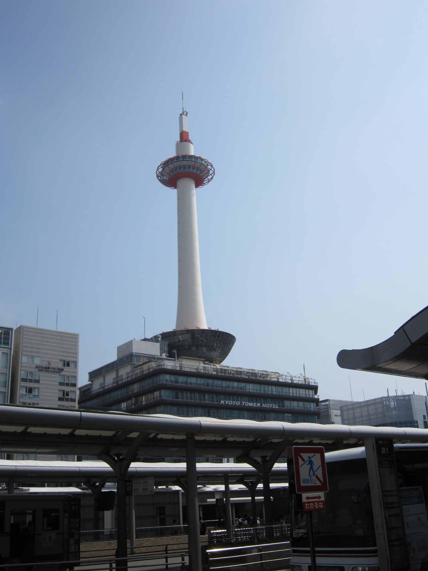 京都駅から行くときは、地下街Portaを通るといいでしょう。看板の案内に従って、地下1階から中に入ります。で、大浴場に行くときも、展望台へ行く専用エレベーターに乗ります。