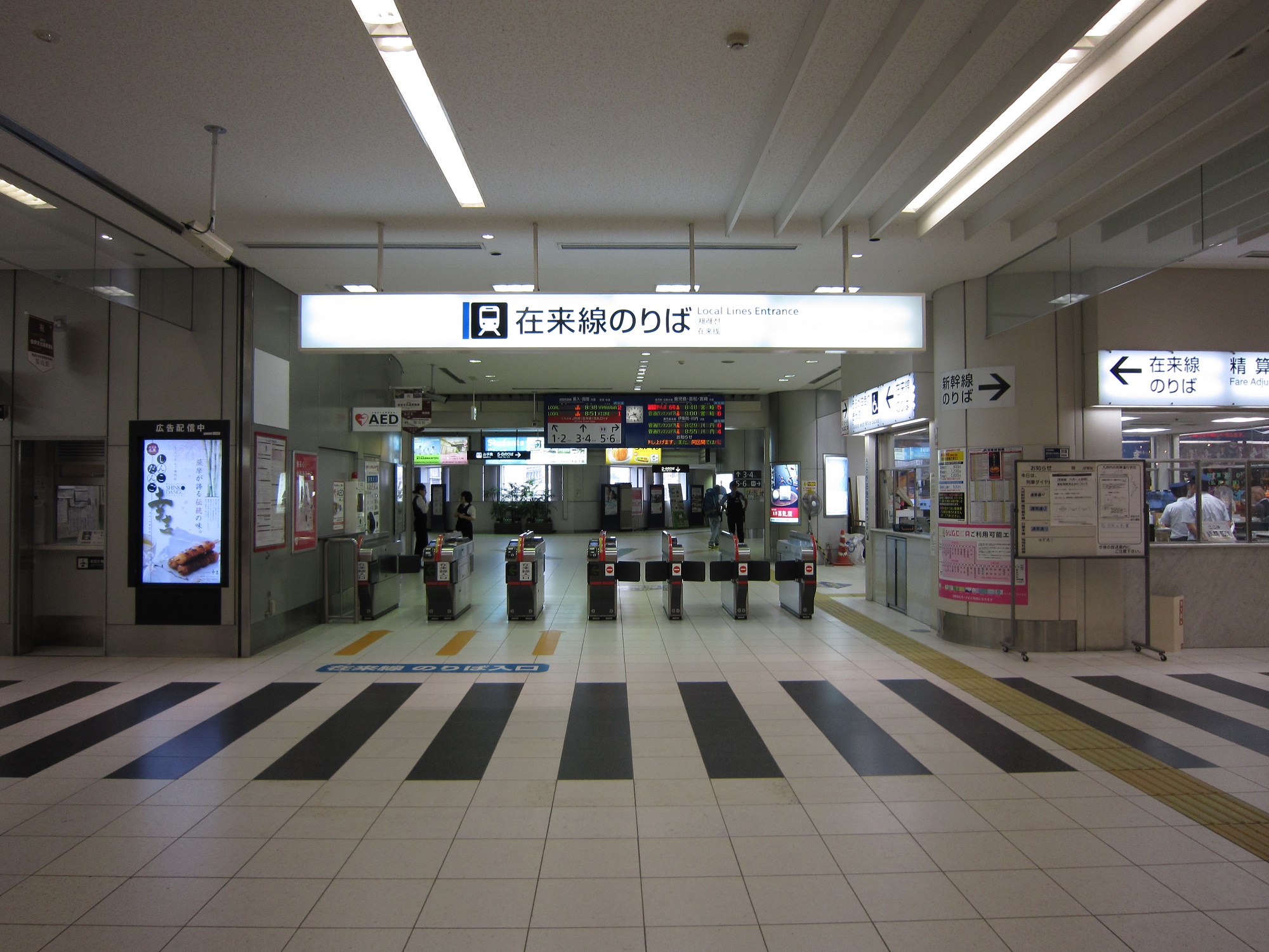 階段かエスカレーターで上がると、改札口があります。まずが、新幹線の改札口。自動改札機は白で統一されています。