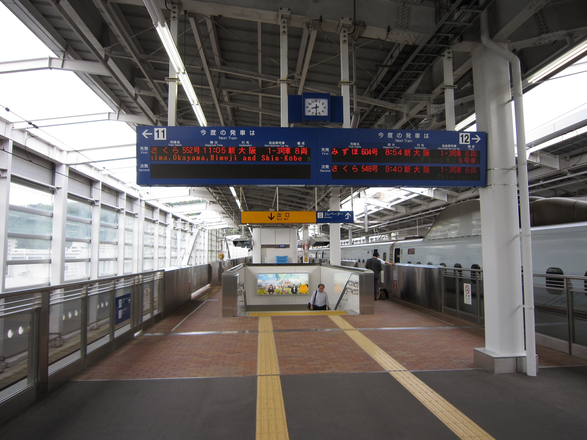 首都圏に住んでいる人が見ると、まず新幹線ホームの短さにびっくり。なぜかと言いますと、九州新幹線は長くても8両編成でして、首都圏みたく16両編成なんてのは来ないんです。次にびっくりするのが、発車時刻。2~3時間後の列車が表示されているって一体・・・