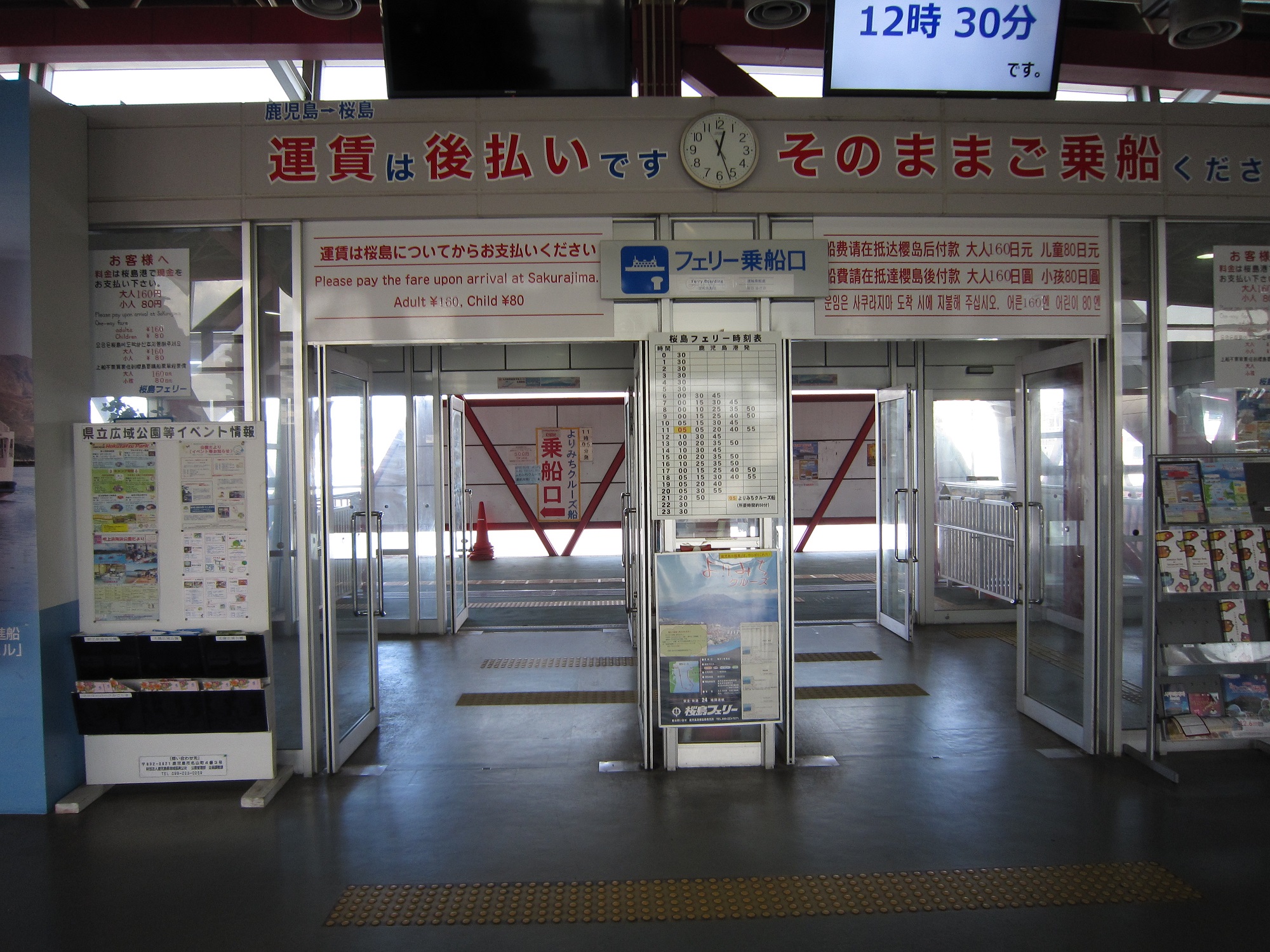 鹿児島に来たんだったら、桜島に行かなきゃ・・・というわけで、桜島行きのフェリーに乗ります。フェリー乗り場は桜島桟橋通の電停から歩いて5分ぐらいのところにあります。