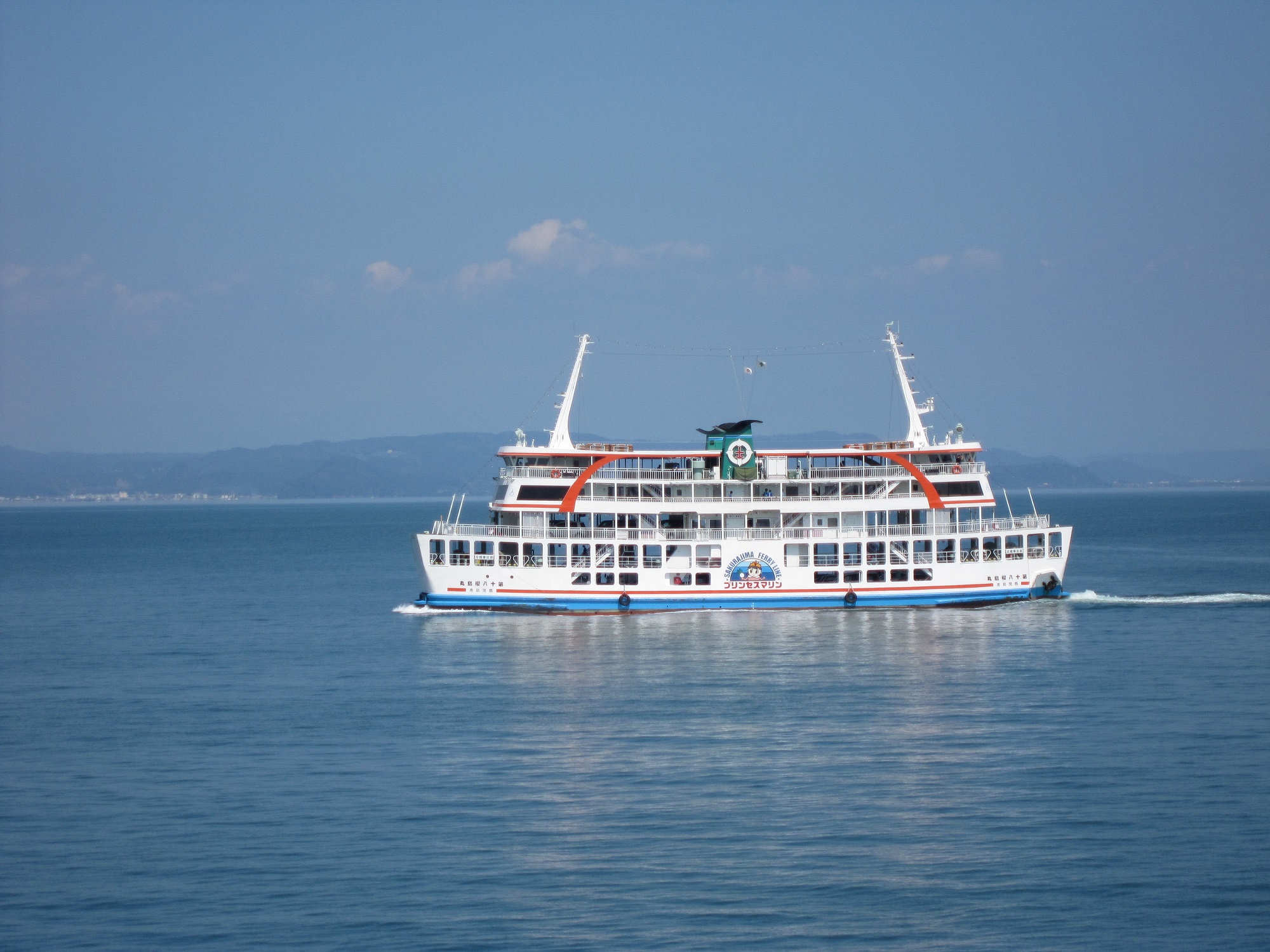 桜島への航行中、鹿児島市内へ行くフェリーを見つけました。この桜島フェリー、日中時間帯はおおむね15分に1回運航しています。運賃は大人160円と、なんと鹿児島市電よりも安いです(鹿児島市電は170円)。しかも、鹿児島市電の1日乗車券を持っている人は運賃が割引になりまして、130円です。