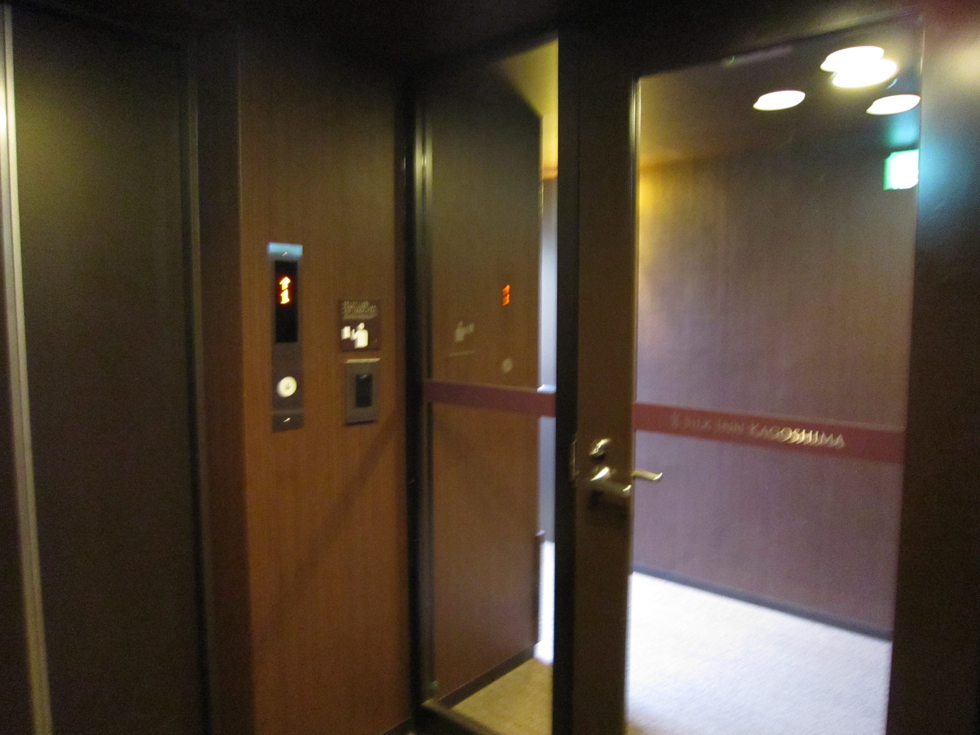 1階がフロントとお食事処、2階が天然温泉の大浴場とリラックスルーム、3階~7階が客室です。エレベーターホールにはカードリーダーがついていまして、カードキーをタッチしないと中に入れない仕組みになっています。