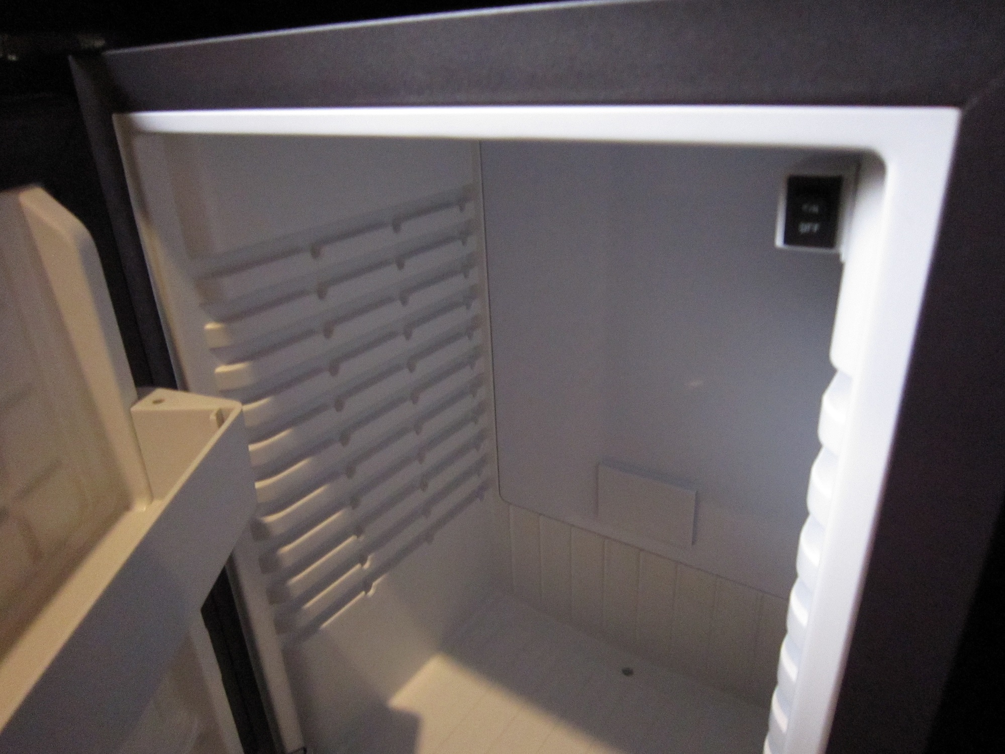 3点目は、空の冷蔵庫がついているのですが、スイッチは切ってあります。この写真の右上の黒い部分がスイッチなのですが、ちょっとわかりにくいところにあるので気を付けましょう。