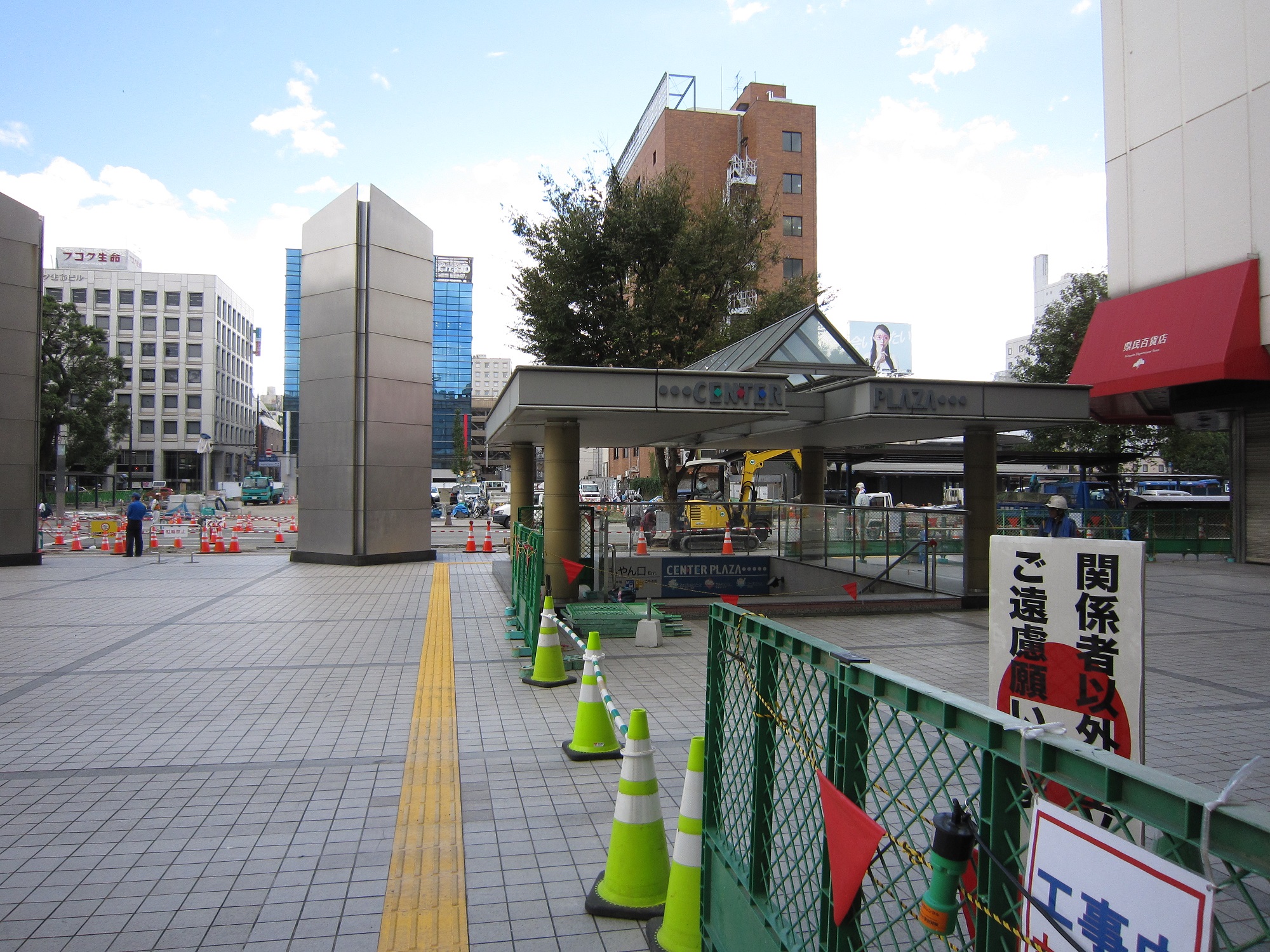 で、熊本交通センターの地下にあるのが、熊本市内唯一の地下街、センタープラザ。地下街になっているのは理由がありまして、バスターミナル内の乗り場を結ぶために地下通路が必要で、ついでに(?)地下街を作ったというわけです。しかし、このセンタープラザも閉店しまして、入口が封鎖されていました。