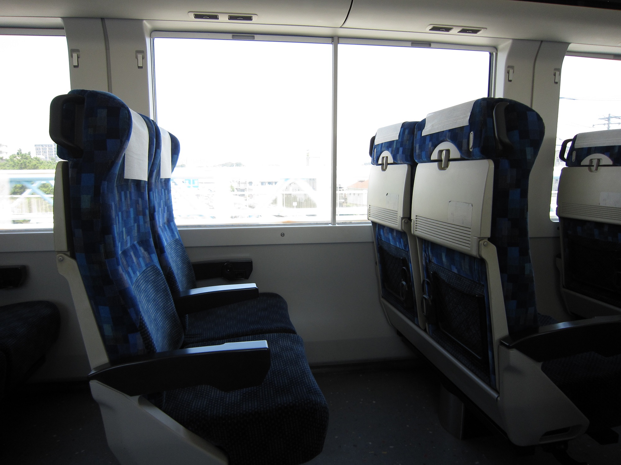 列車はかなり新しいです。5両編成で、グリーン車はついていません。たまに5両編成の車両を2本つないで、10両編成で運転するときもあります。