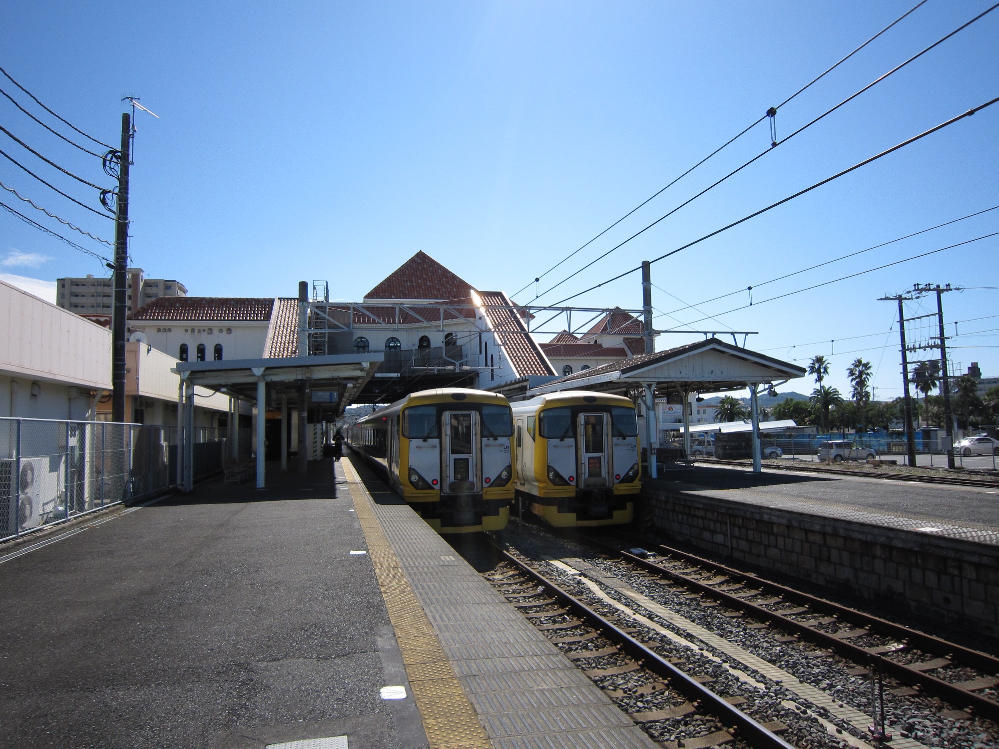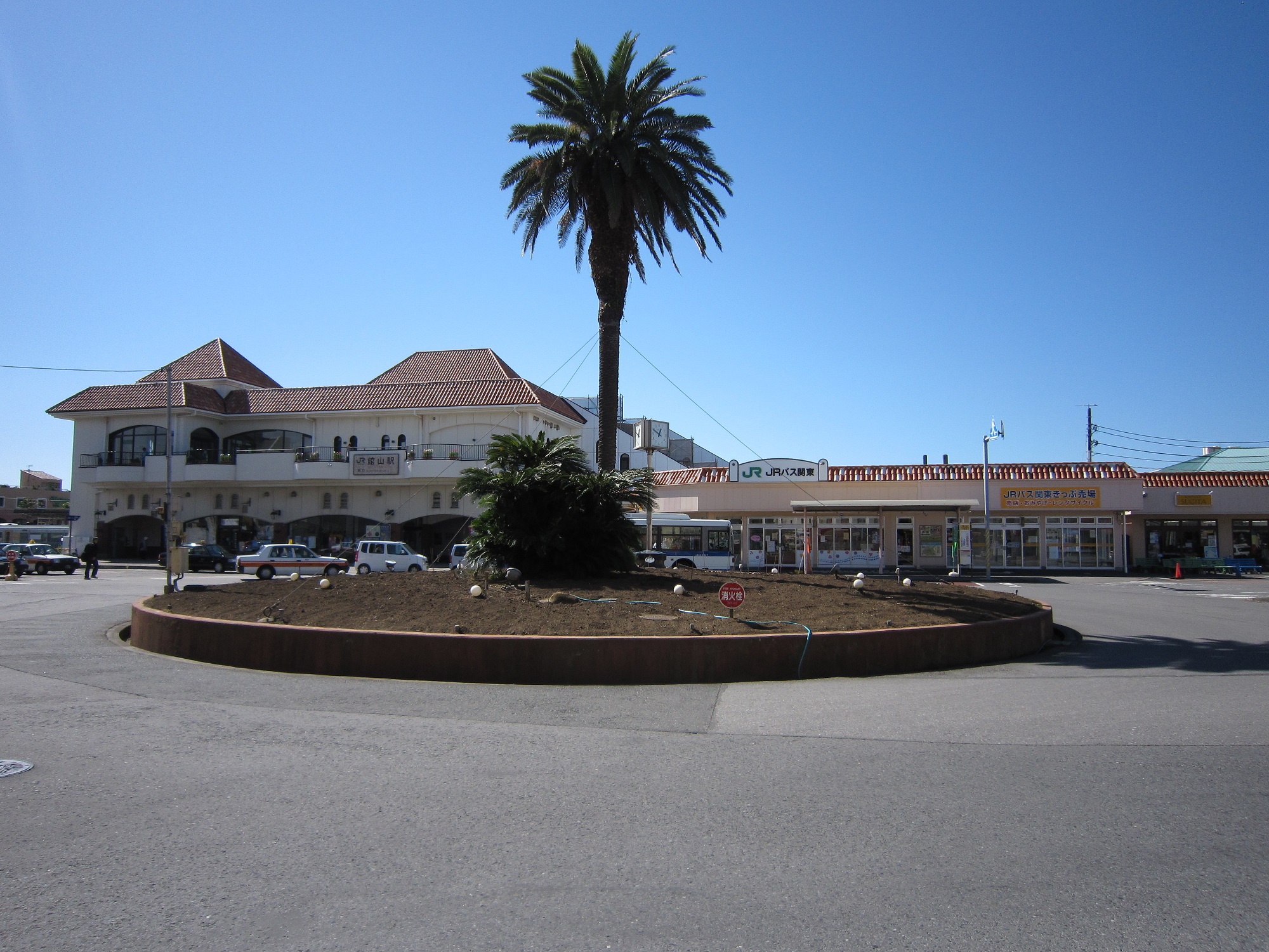 こちらが、西口です。洋風のしゃれた駅舎ですね。駅前は南国ムードたっぷりでして、タクシー乗り場やレンタカー乗り場こそあるものの、お店らしいお店が全然なくて、どこか寂しい感じです。ちなみに、海に近いのはこっちです。