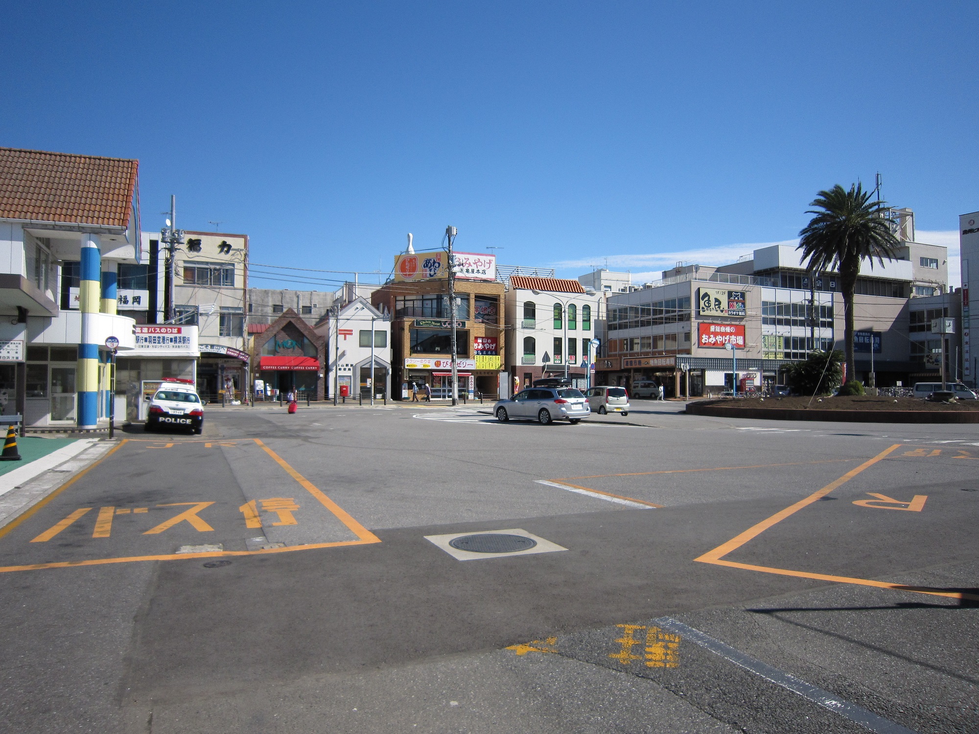 で、これが駅前ロータリーです。飲食店が立ち並んでいまして、やはりこっちがメインという感じがします。もっとも、ひとたび駅前ロータリーを過ぎれば、突如としてお店がなくなるのですが。