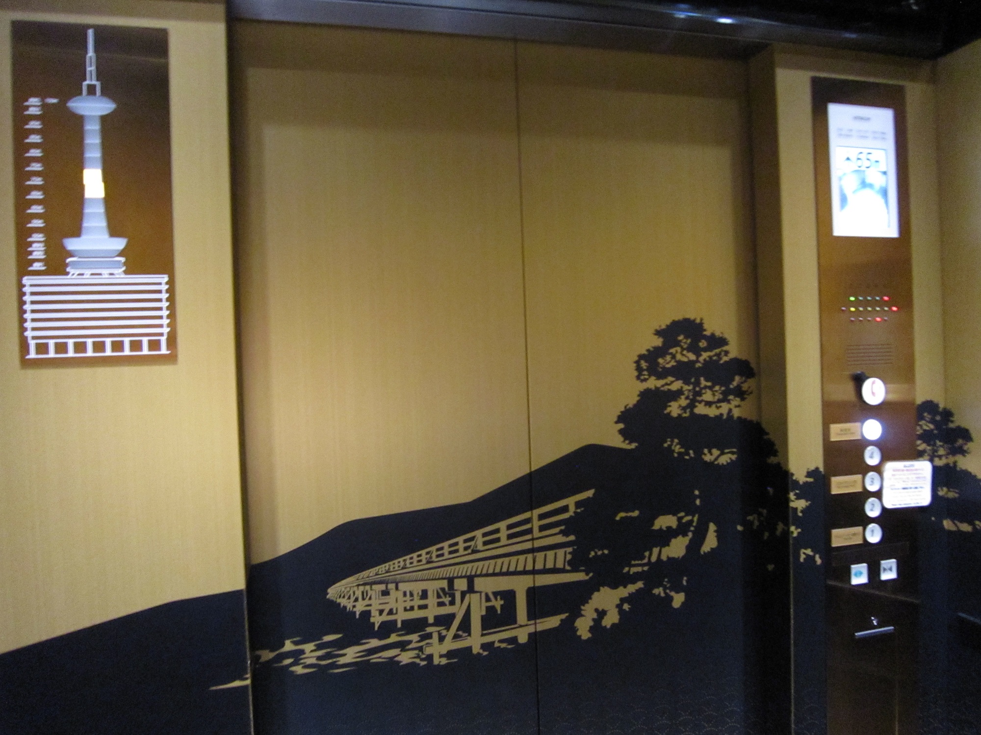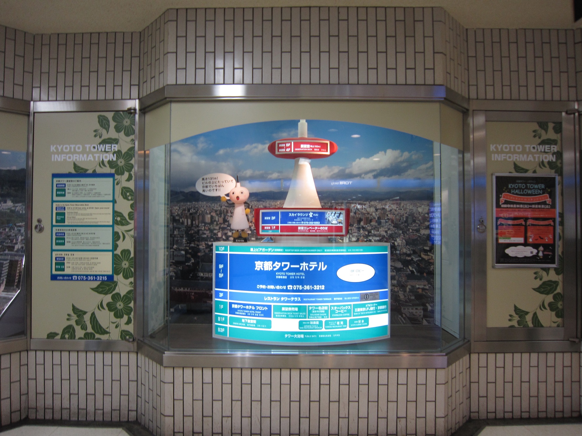 上の楕円形になっている部分が、展望台になっています。入場料は大人700円ですが、京都タワーホテルの宿泊客は300円です。展望台へ行くには、まず展望台行きエレベータで11階まで行きます。