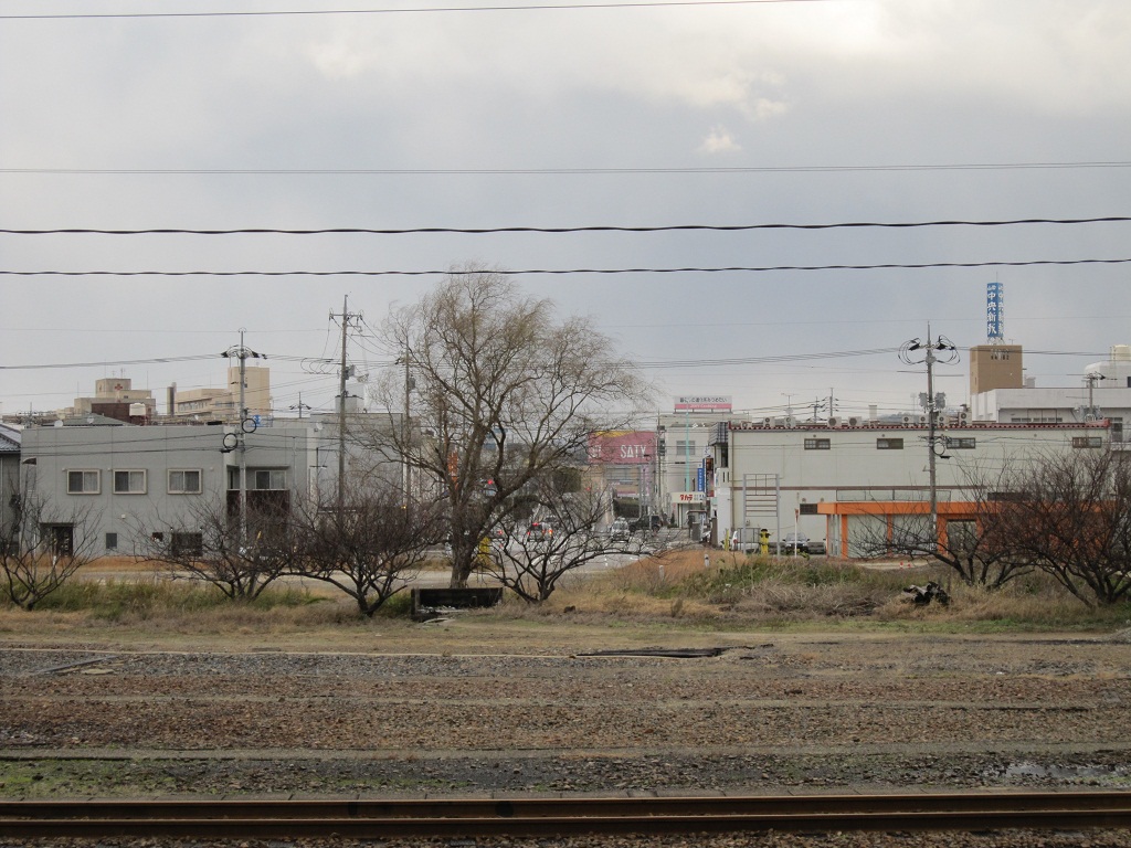 ご覧のとおり、あまり高い建物がありません。4階建てなら、十分高い建物ですね。駅前には、食べるところが多いとは言えないですが、少なくとも米子よりは苦労しなくて済んだ感じです。ただし、駅前で買い物するところは、コンビニぐらいしか見つかりませんでした。