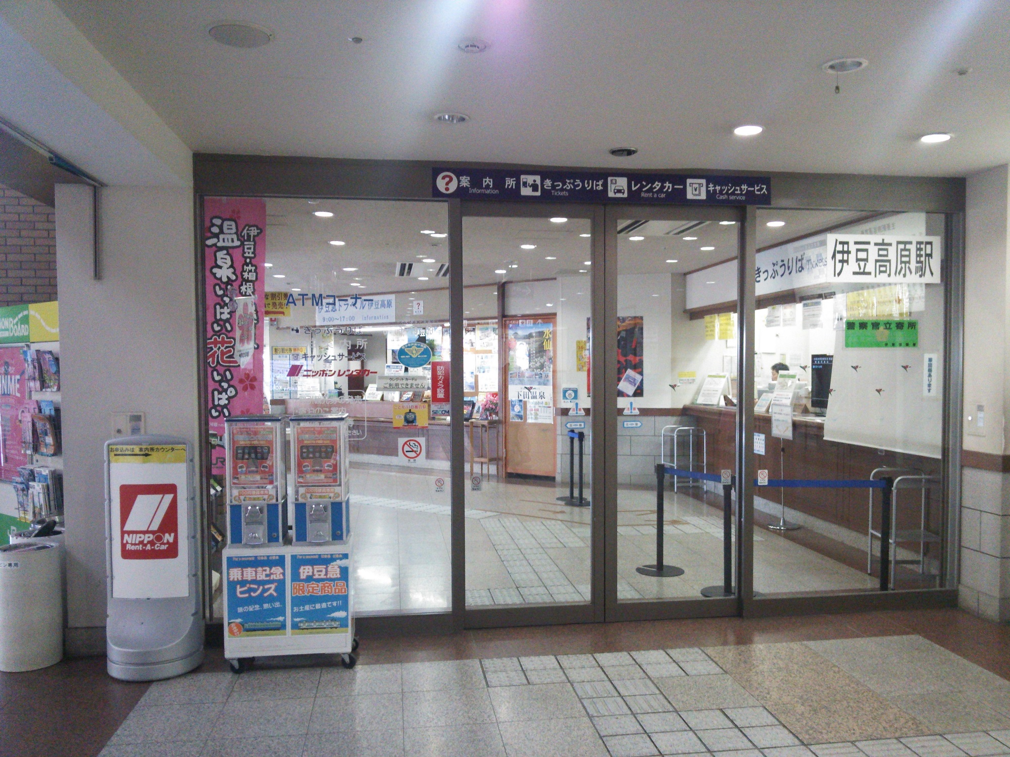 入館料は平日で大人1,230円、子供720円。土曜休日で大人1,640円、子供930円です。タオルのレンタル(ていうか使い放題)は含まれているのですが、館内着のレンタルは別料金で410円です。ただし、伊豆高原駅の案内所(この写真)で、100円割引で買える前売券を売っています。なので、伊豆急で来た人は、事実上100円割引になります。入館料と館内着レンタルは券売機で、その他館内は都度精算する方式です。また、脱衣場は100円リターン式です。