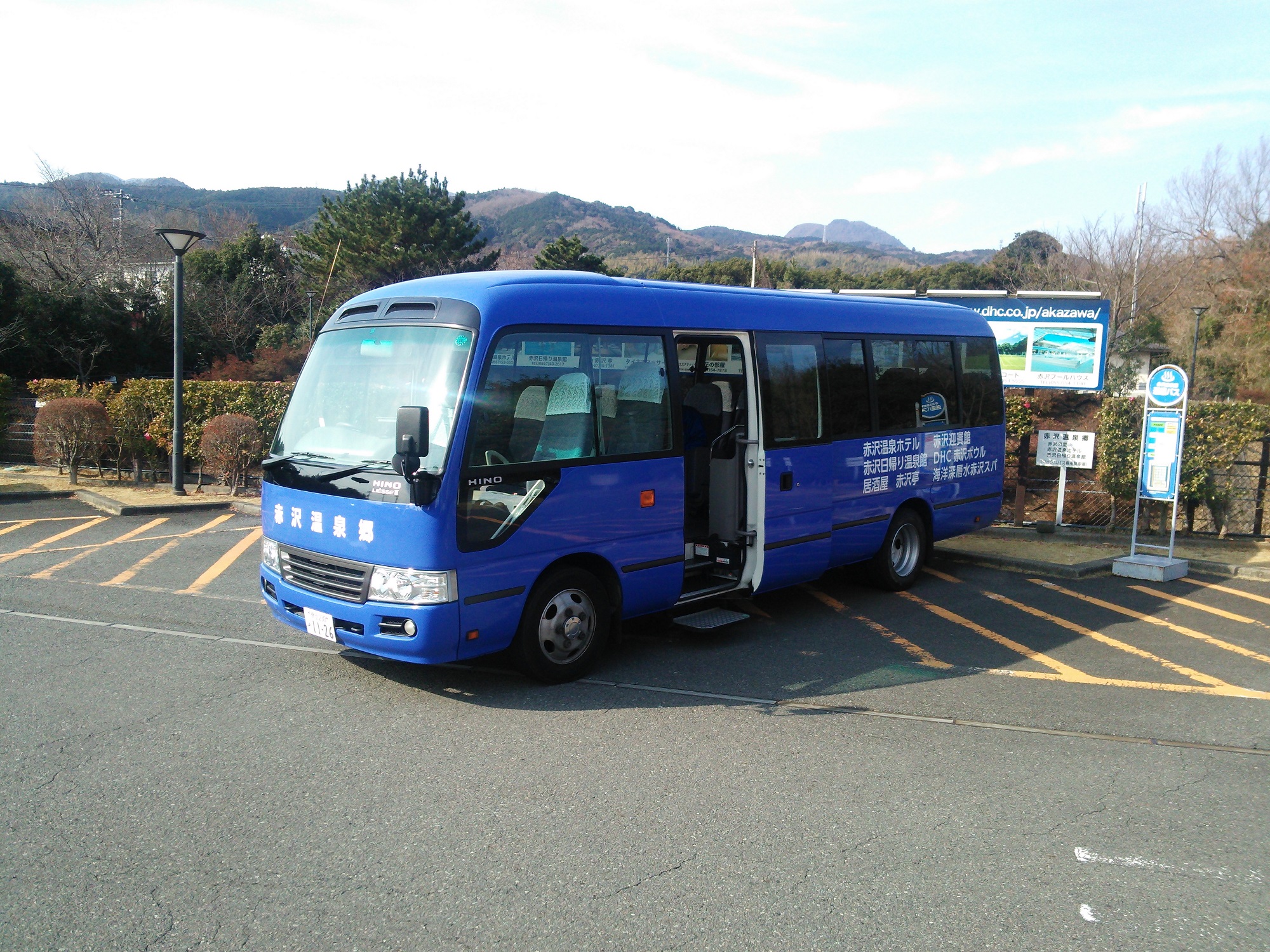 場所は、伊豆急行線の伊豆高原駅から車で15分ほど行ったところです。伊豆高原駅からは、無料送迎バスが出ています。ただ、平日は1時間おおむね1本~2本と少なく、土日はおおむね1時間に2本~3本と多いものの毎度渋滞に巻き込まれるため、使い勝手はあまりよくありません。