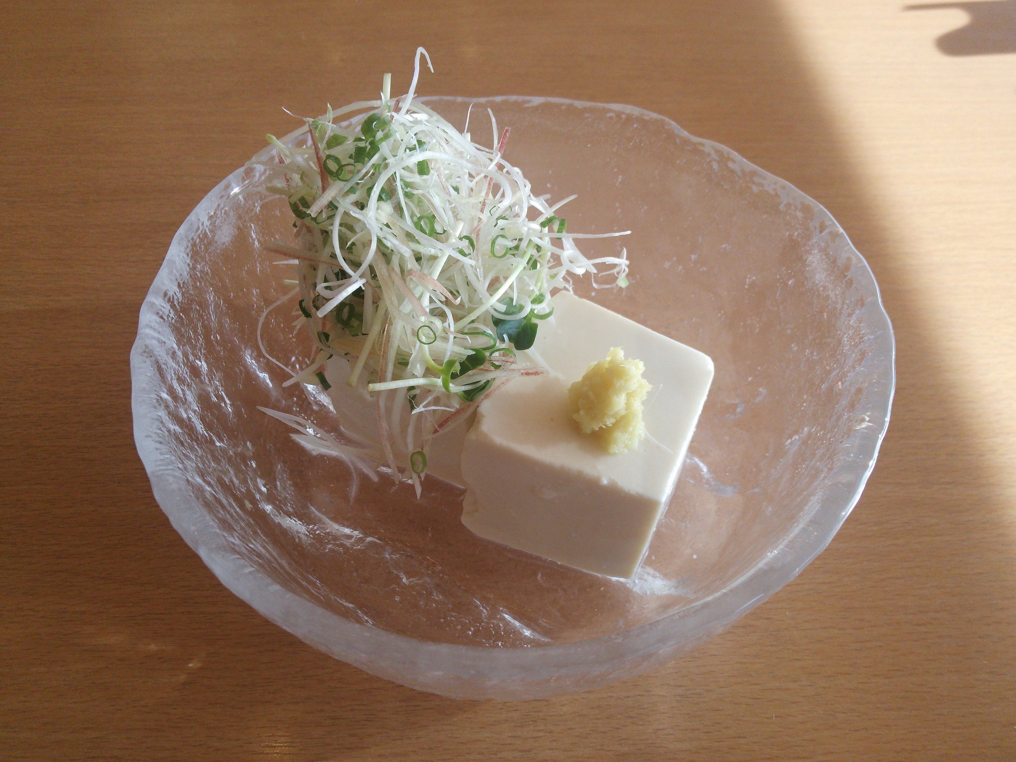 その後、冷や奴を注文。324円でした。写真ではわかりにくいのですが、サラダボールに入って出てきた冷や奴を見て、思わす「でかっ!」 しかも、白ネギ、ミョウガ、芽大根がこれまた冷や奴と会うんです。