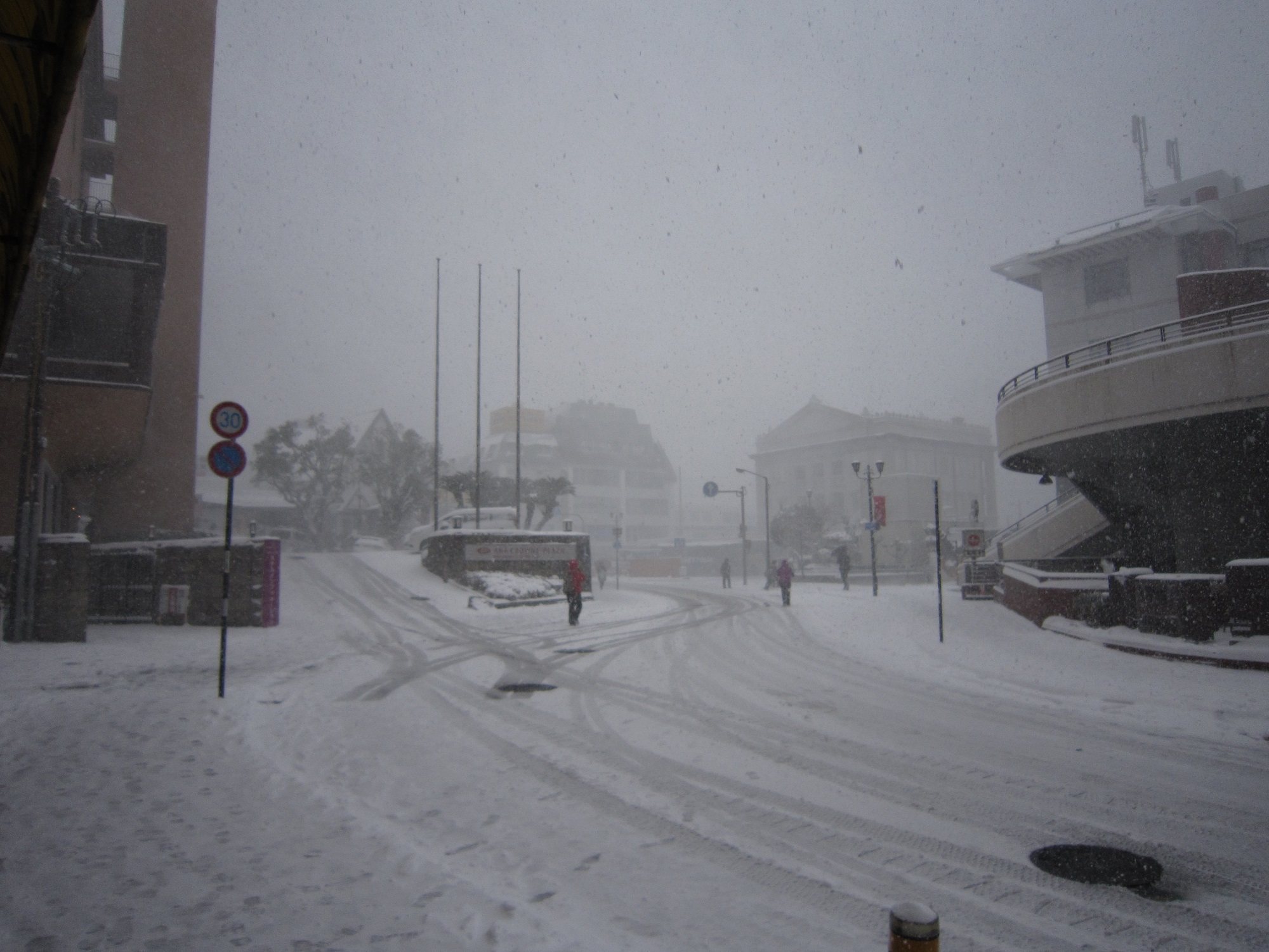 しかし、この日はおよそ40年ぶりともいえる大寒波が来まして、長崎市内は大雪。大浦天主堂下電停のすぐ近くにあるANAホテルも、完全に雪景色。およそどこの雪国なんだろうという感じです。