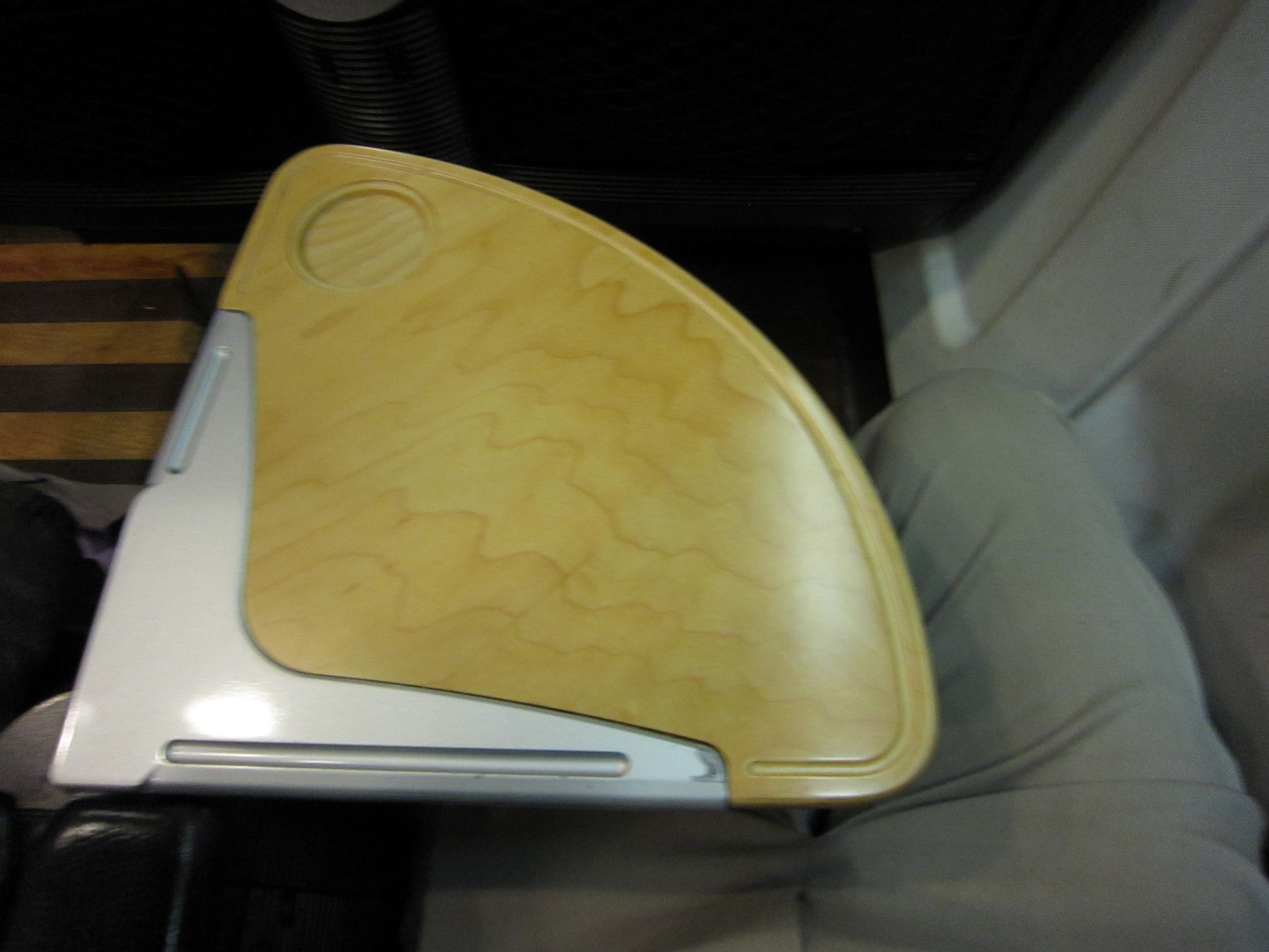 テーブルはシートのひじ掛け部分に格納されています。ご覧のとおり、かなり小さいです。