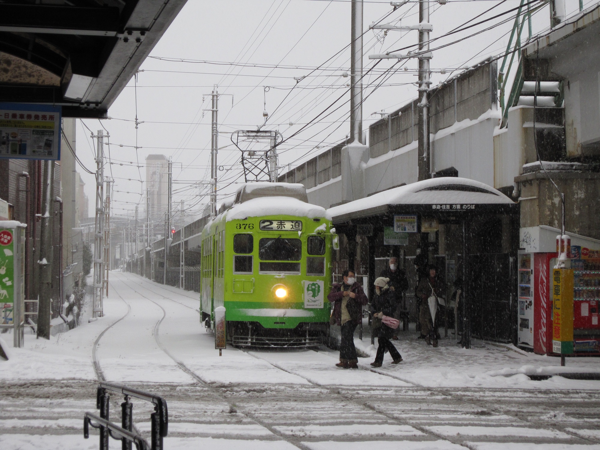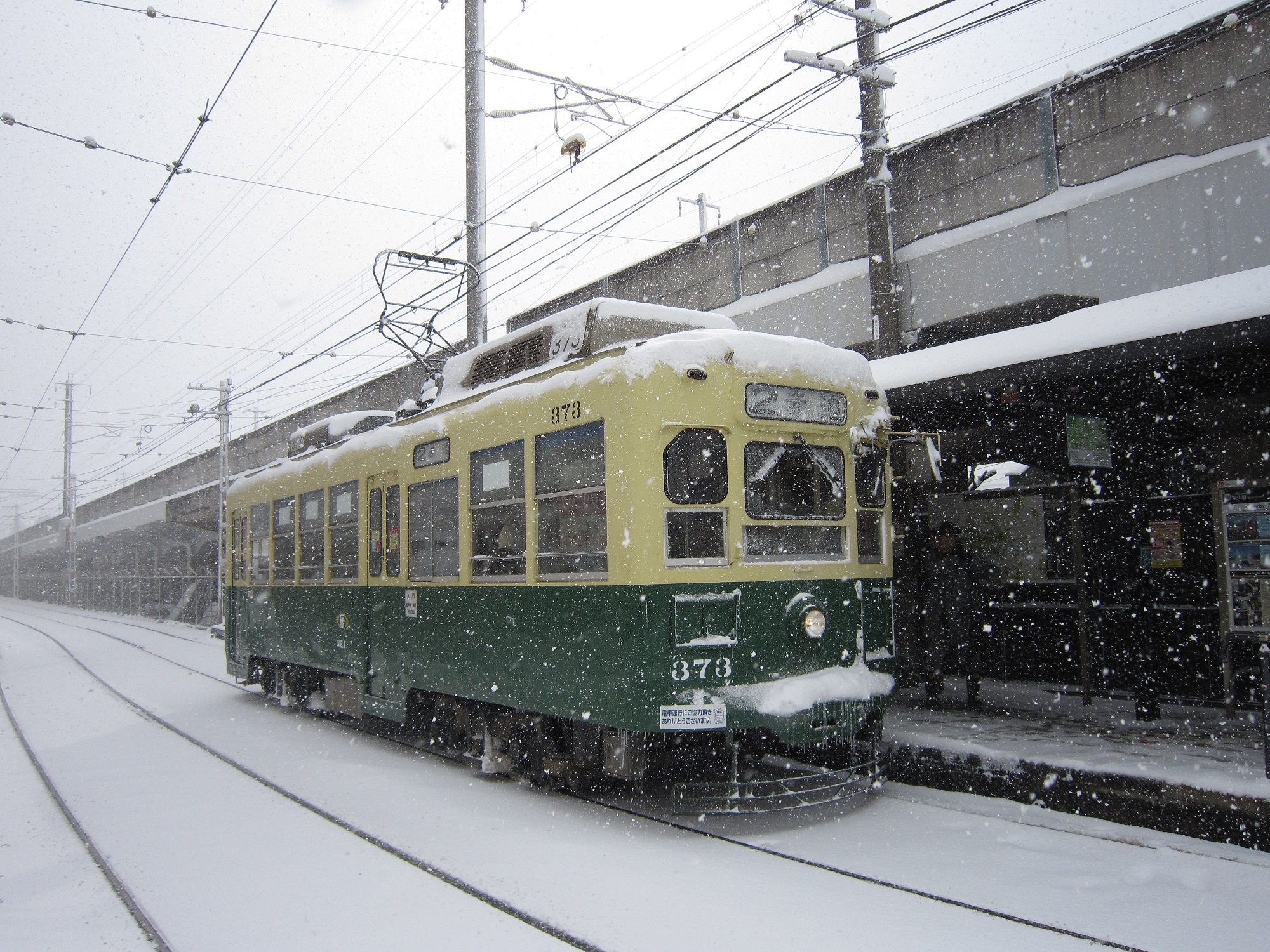 長崎電気軌道 370型 大雪の長崎市内 松山町電停にて
