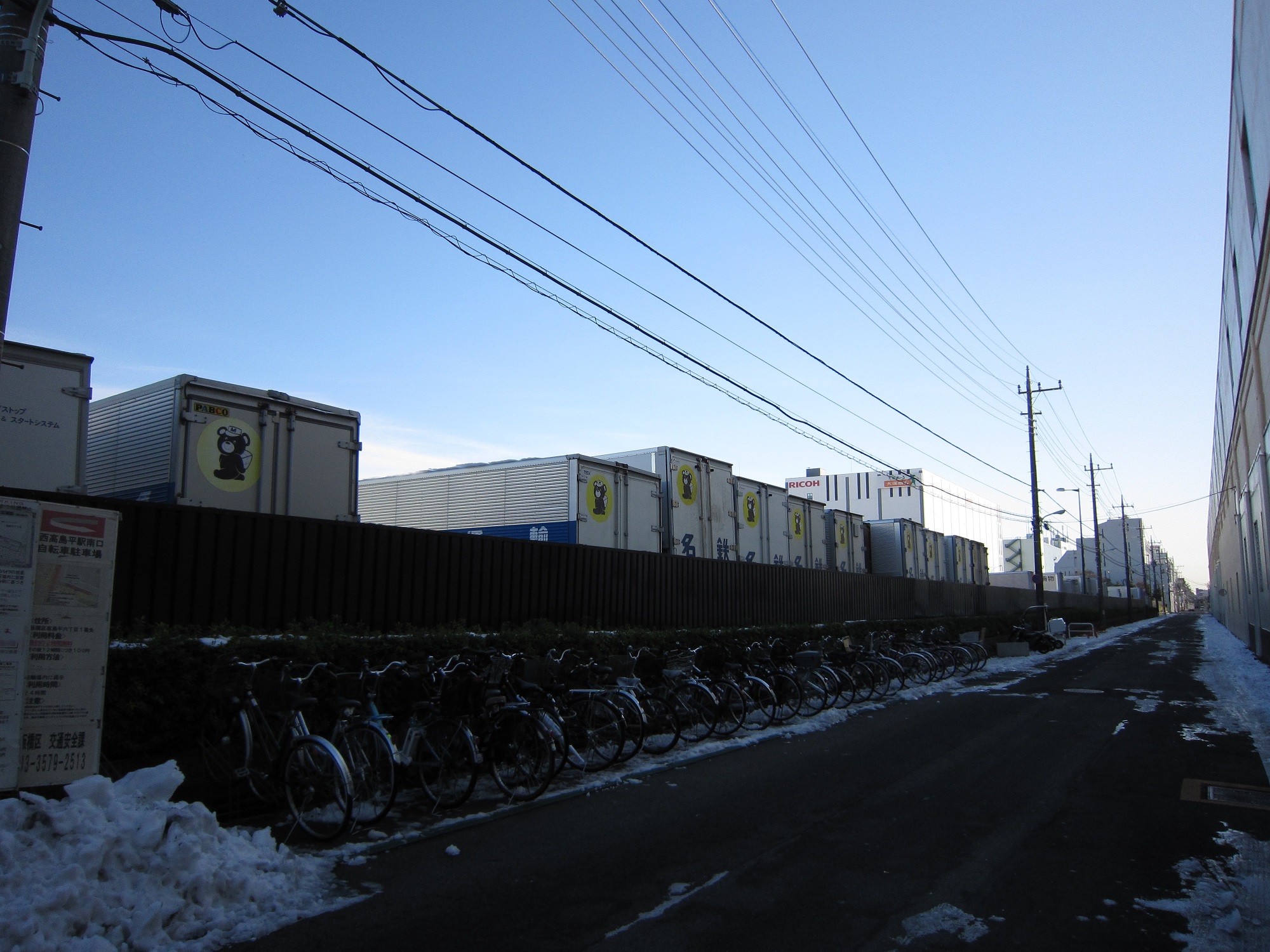 で、反対側に出てみますと、見えるのは見渡す限りの広ーいトラックターミナル。では、トラックターミナルの利用者、もうちょっと言うとトラックの運転手さんが地下鉄を利用しているのかというと、ビミョー。