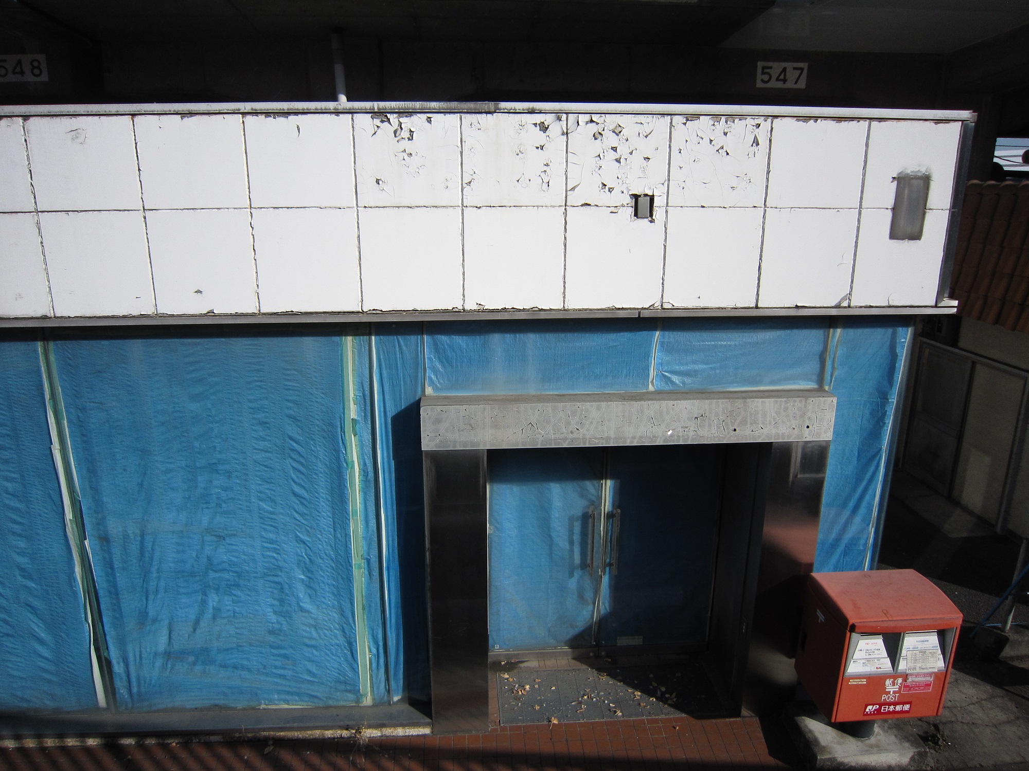 そのお隣の建物がこれ。シャッターが閉まっていまして、看板もなく。どう見てもすでに閉店して、空き家と化していますね。