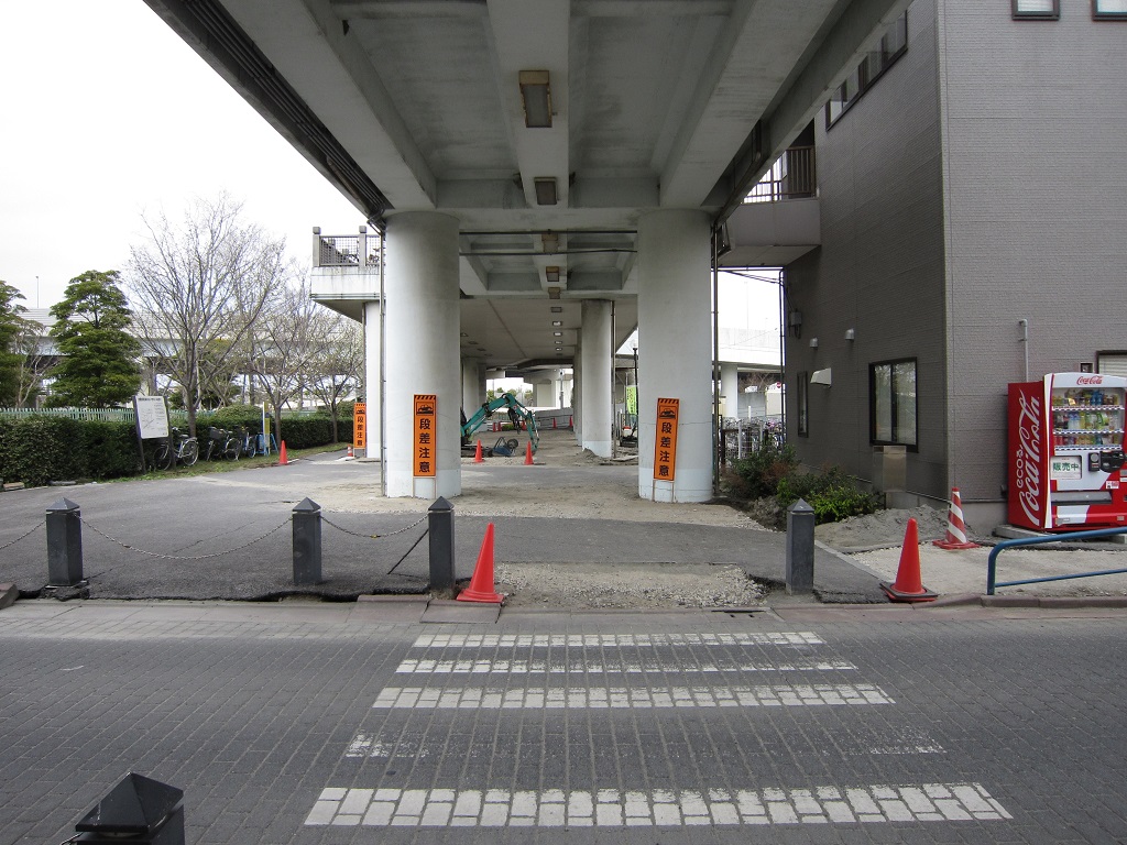 東日本大震災直後のJR京葉線 舞浜駅北口 アスファルトが剥がれて現在工事中です