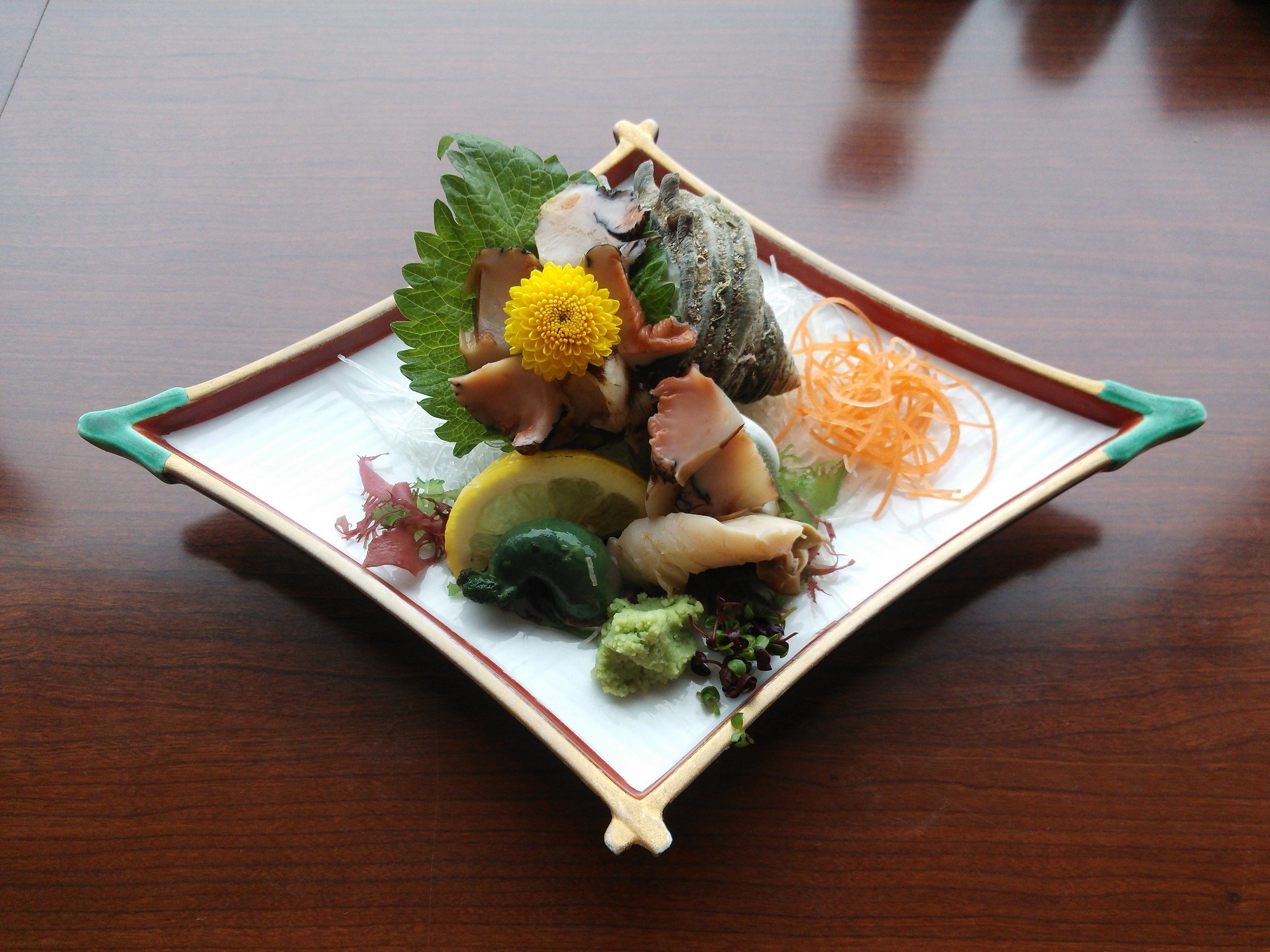 次の頼んだのが、サザエの刺身。980円でした。同じ値段でサザエのつぼ焼きもあったのですが、サザエのつぼ焼きだと一瞬でなくなりそうだったので、お刺身にしました。身がコリコリとしていて、うまかったです。その代わり、それなりにお値段が張るのですが。