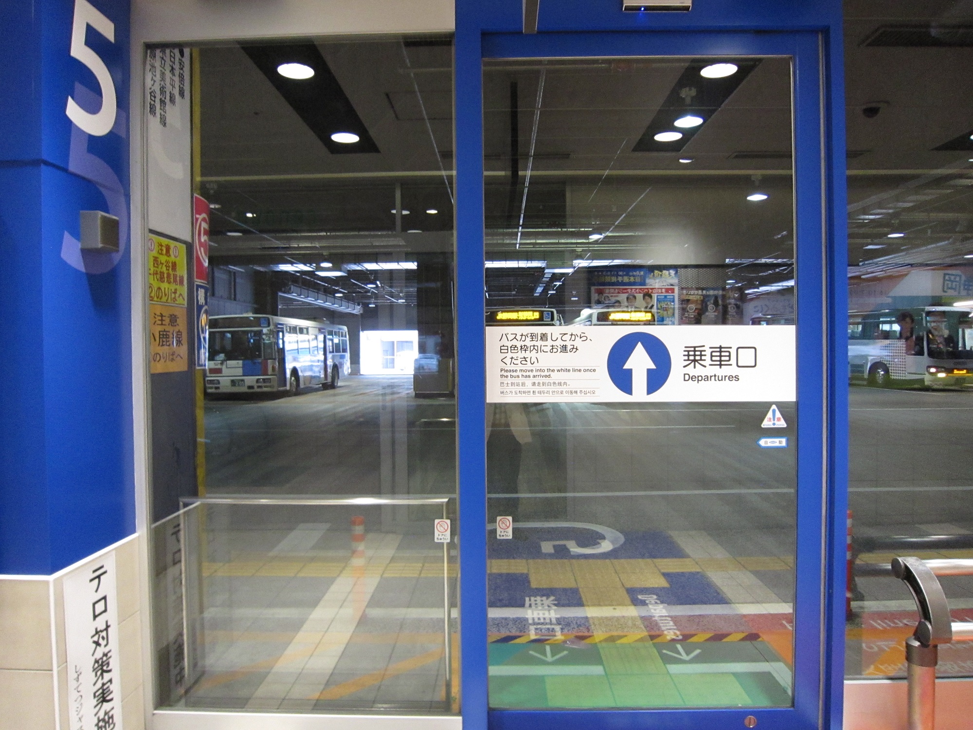 静岡駅バスターミナル 5番乗り場 バスが来たら自動ドアを開けてバスに乗る仕組みになっています
