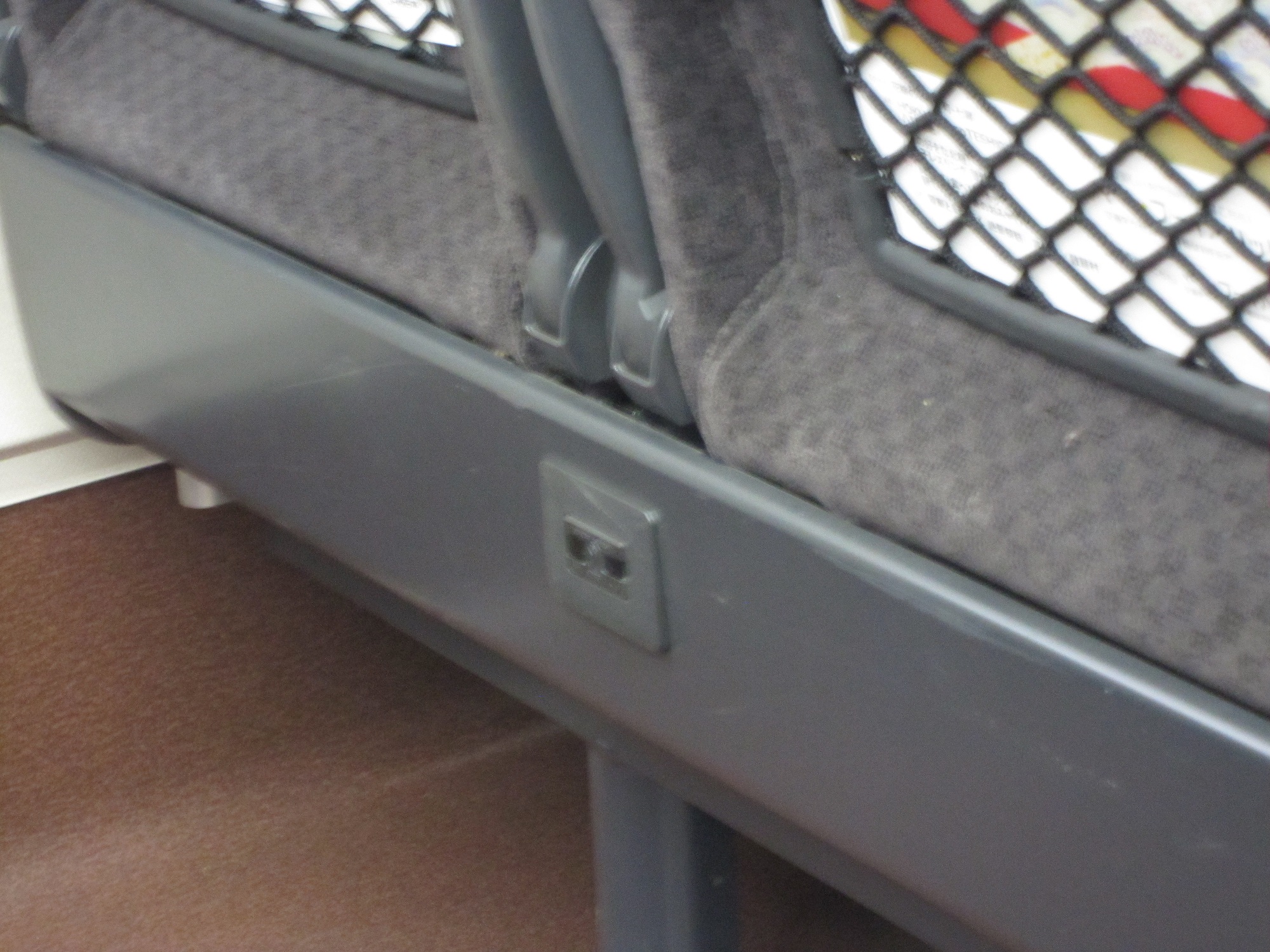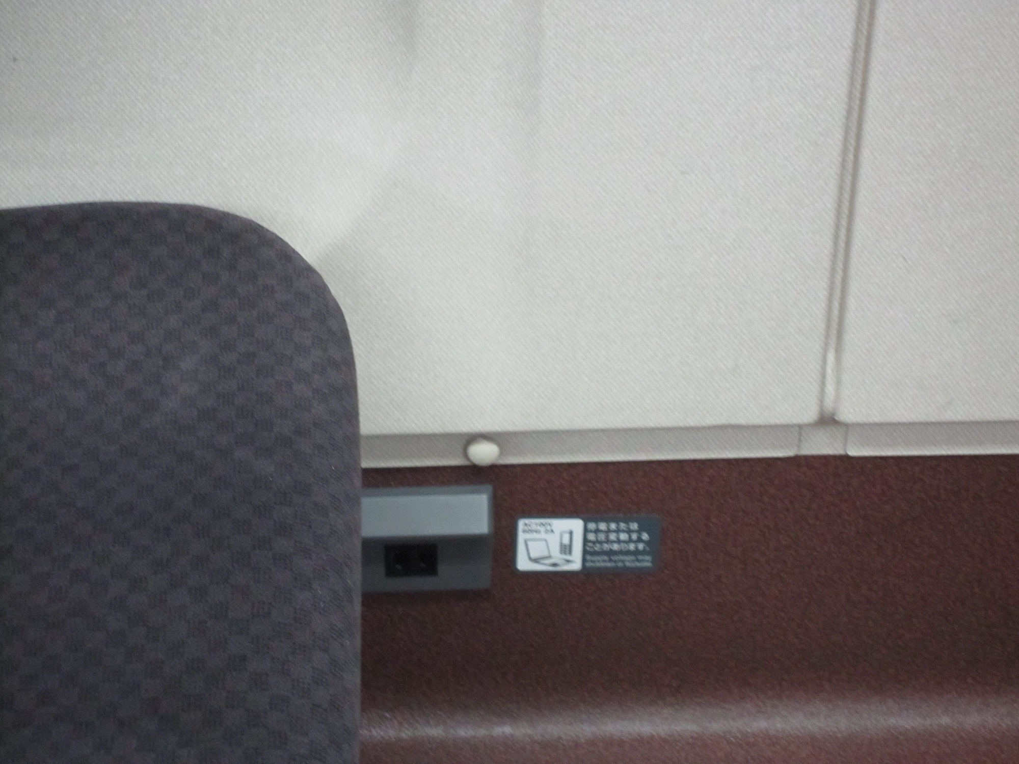 ありがたいことに、座席下にもついています。2人掛けシートは1個。3人掛けシートは2個ついています。なので、窓側じゃない人でもコンセントにありつけます。