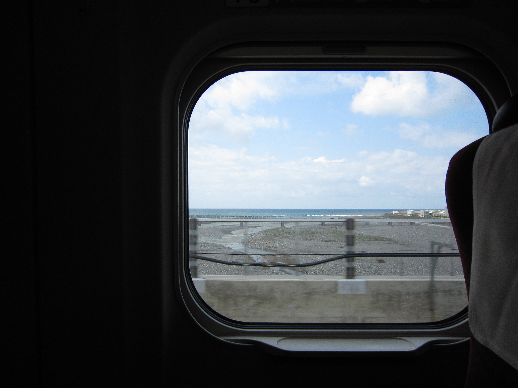 糸魚川から金沢寄りは、車窓から日本海が見えます。ちなみに、海が見えるのは3列シートがある側、窓側はA席です。