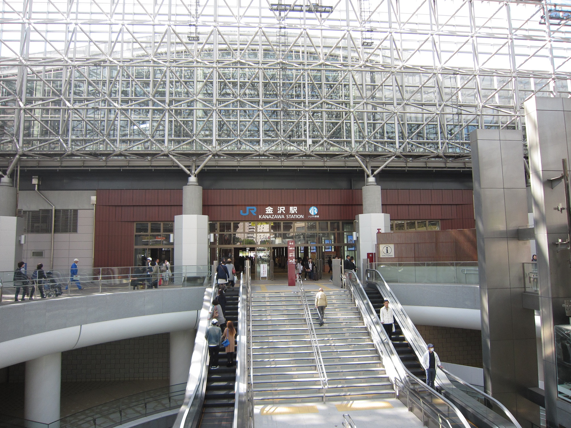 北陸新幹線の終点(この記事を執筆時点で)、金沢駅です。北陸新幹線のほか、JR北陸本線、IRいしかわ鉄道、北陸鉄道浅野川線が乗り入れます。