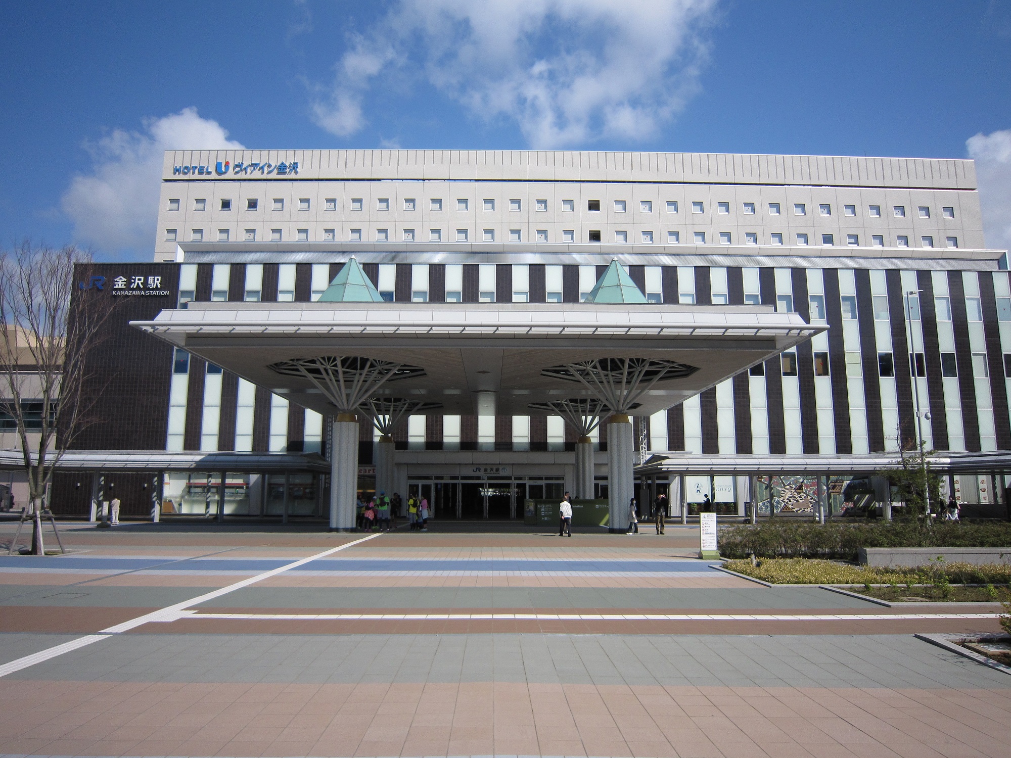 兼六園口です。駅前バスターミナルのほか、この地下に北陸鉄道の北鉄金沢駅があります。