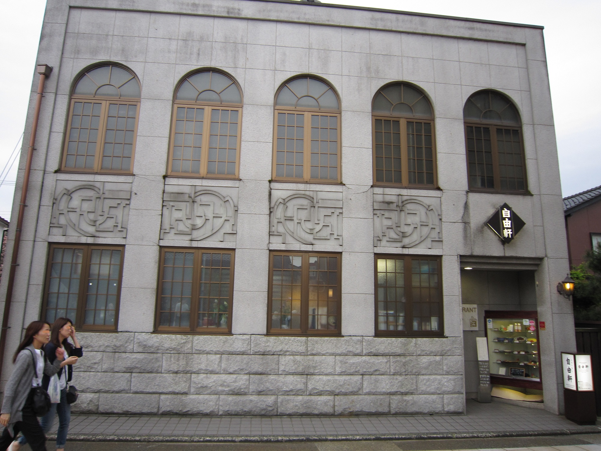 ひがし茶屋街の入り口にある、自由軒というレストランです。洋風の、これまた趣のある建物ですね。